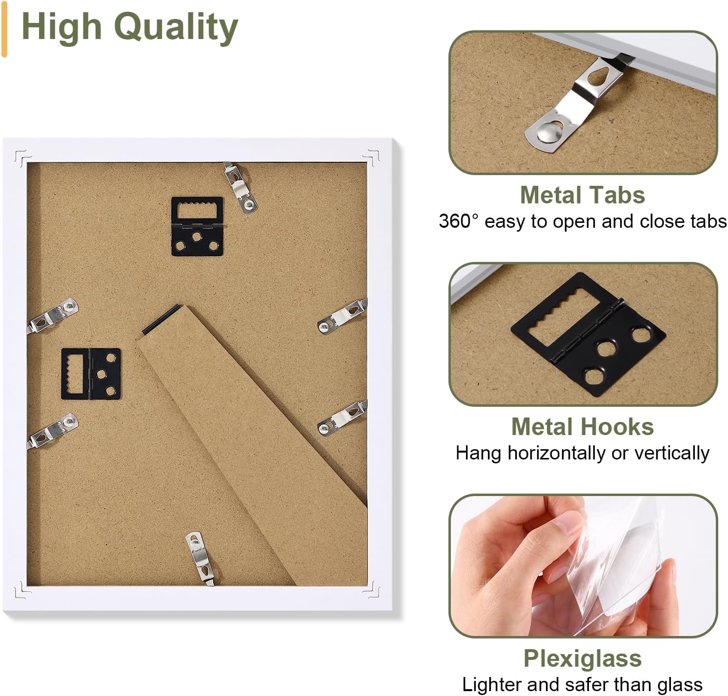 • Ease of Use: The collage frame features a quick-release back panel with flexible tabs for effortless photo switchs in seconds. Pre-installed hooks allow instant wall mounting horizontally or vertically