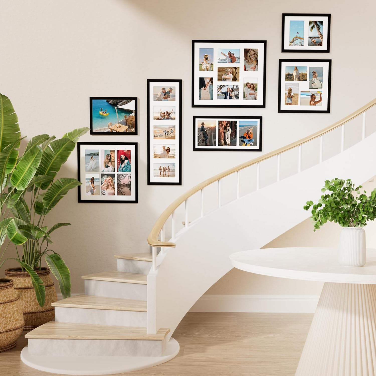 • Ease of Use: The collage frame features a quick-release back panel with flexible tabs for effortless photo switchs in seconds. Pre-installed hooks allow instant wall mounting horizontally or vertically