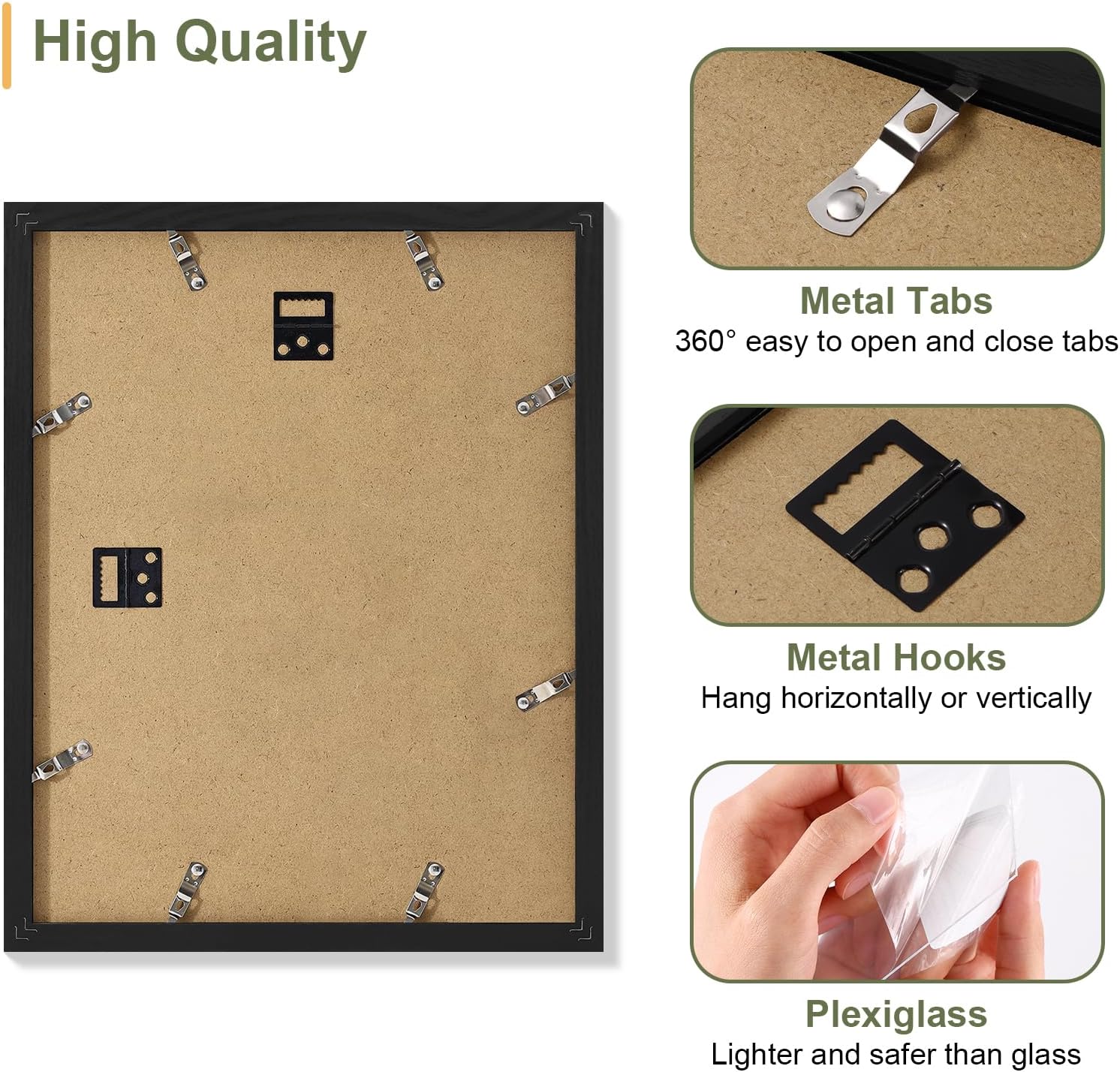 • Ease of Use: The collage frame features a quick-release back panel with flexible tabs for effortless photo switchs in seconds. Pre-installed hooks allow instant wall mounting horizontally or vertically