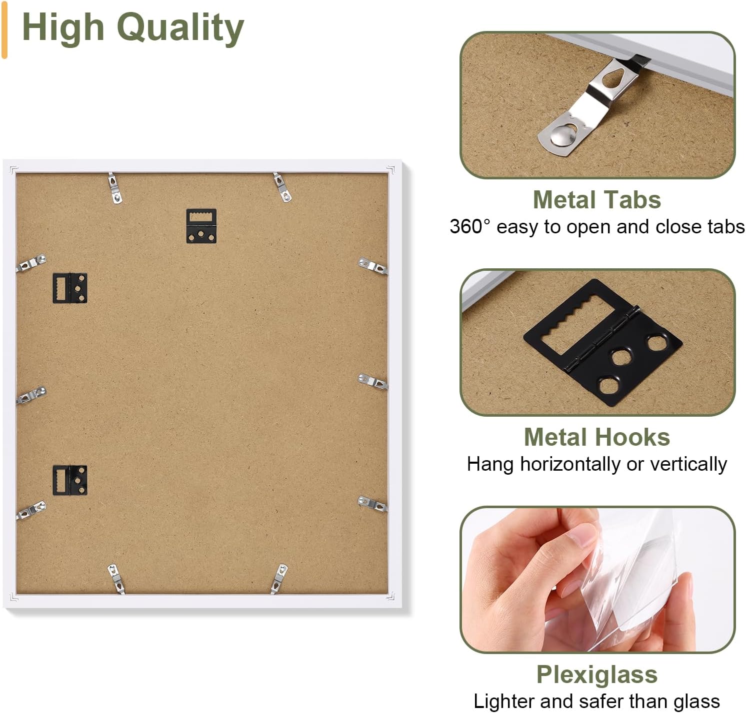 • Ease of Use: The collage frame features a quick-release back panel with flexible tabs for effortless photo switchs in seconds. Pre-installed hooks allow instant wall mounting horizontally or vertically