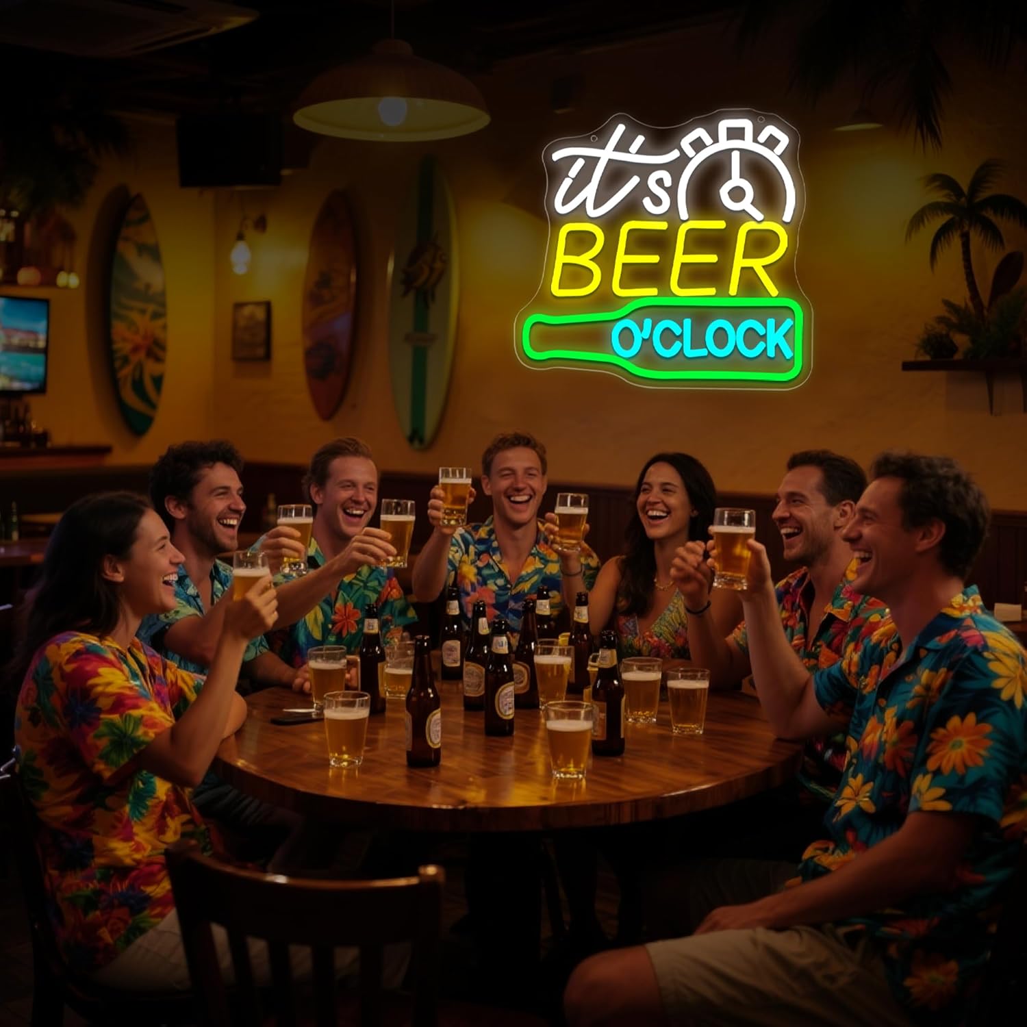 • Unique Design: The beer neon sign showcases the fun phrase it’s beer o’clock with a retro clock and beer mug motif. Beer lovers will instantly vibe with this design that celebrates the perfect time for a brew. Ideal for bars, man caves, or patios, it adds a lively, laid-back charm and becomes a focal point for beer-fueled gatherings
