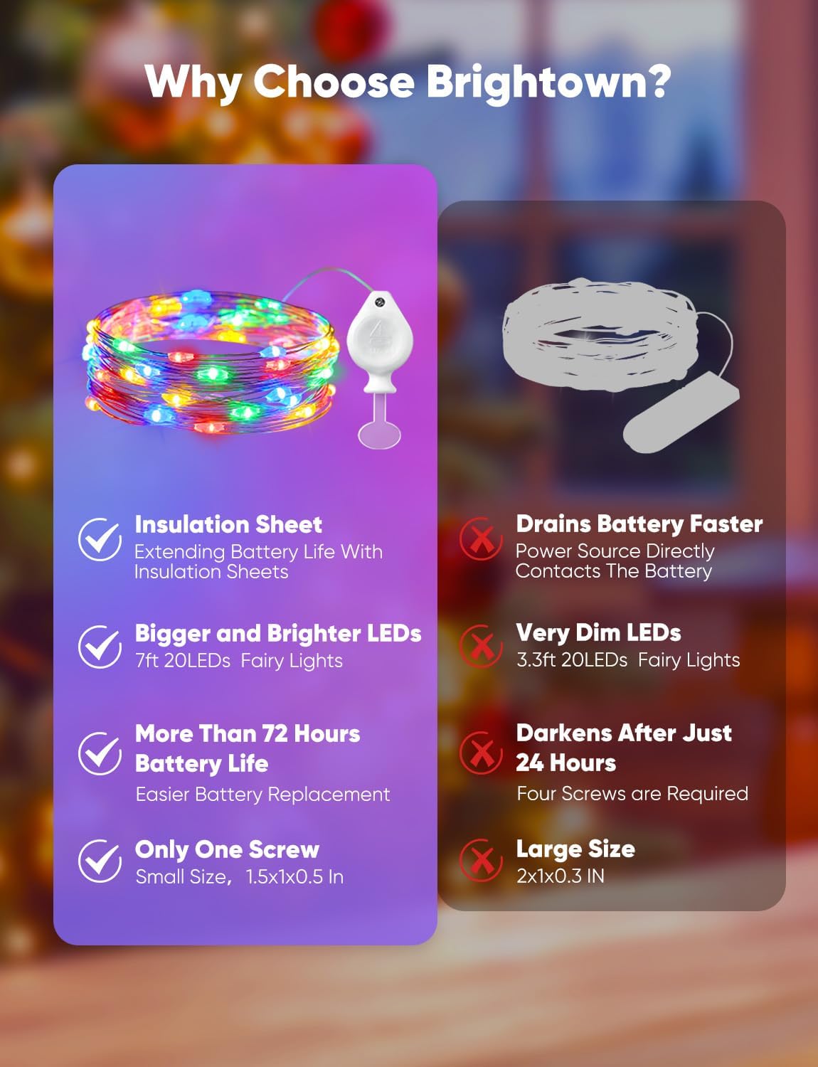 • [Zero Standby Power & Eco-Friendly] Fairy lights features a unique sliding insulating tab that physically disconnects the circuit when slid out (lights on) or in (lights off). This eliminates all battery drain when off, significantly extends battery life, reduces replacement frequency, and minimizes waste for a more sustainable choice