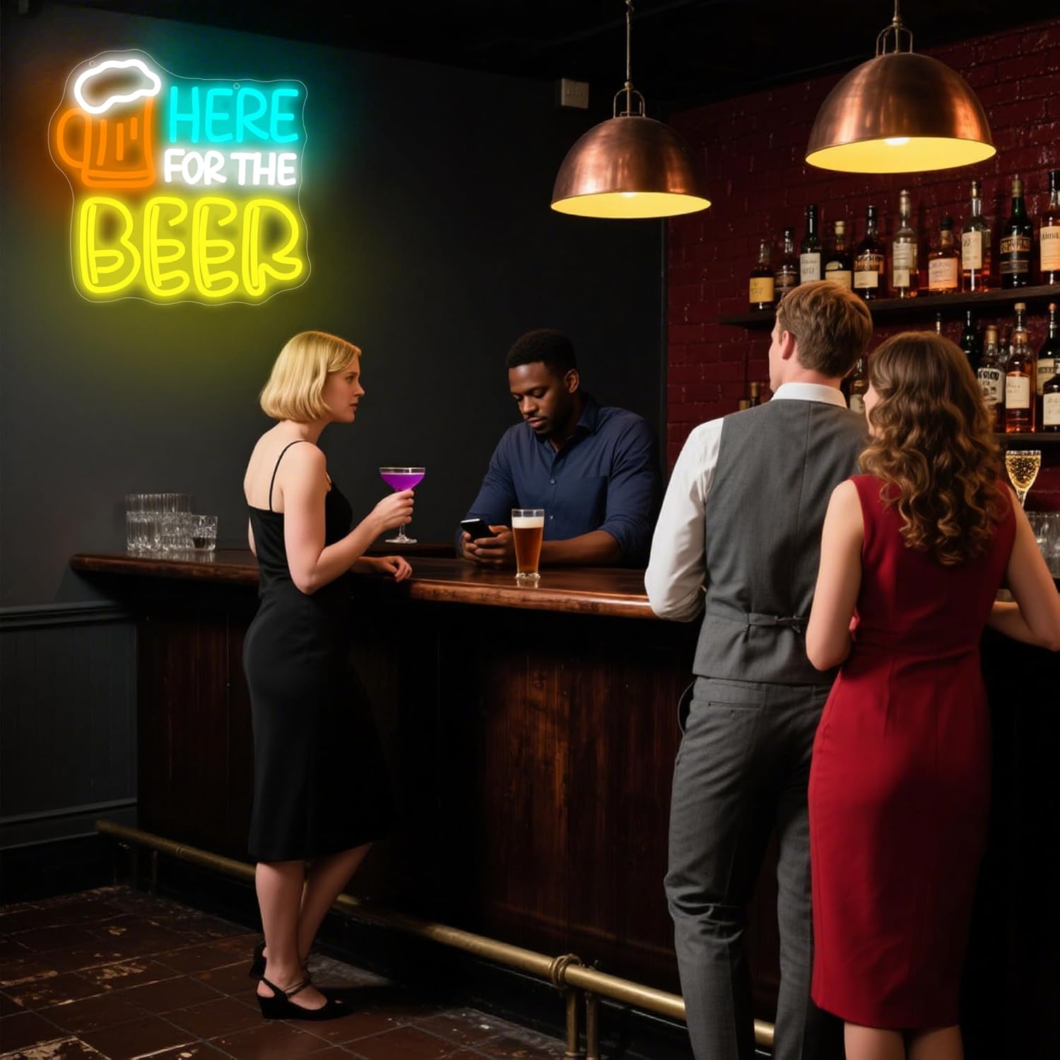 • Unique Design: The beer neon sign flaunts the bold phrase here for the beer paired with a classic beer mug graphic. Beer enthusiasts will instantly connect with this fun-loving design. Ideal as standout decor for bars, man caves, or patios, it adds a lively, laid-back vibe that screams cheers and draws attention