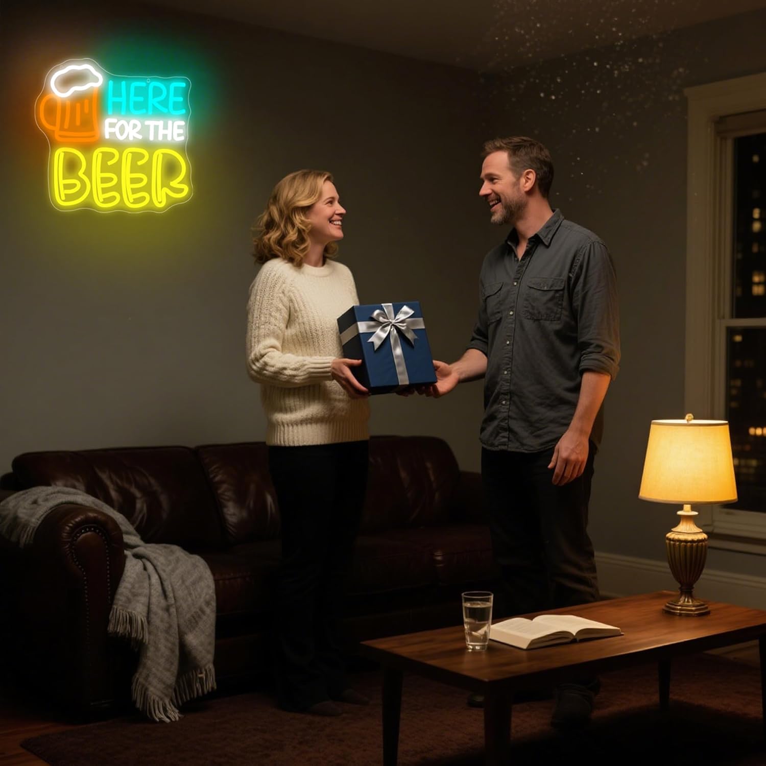 Here for The Beer Neon Sign for Wall Decor Beer Neon Light for Man Cave Dimmable LED Light Bar Pub Party Restaurant Christmas Birthday Gift Art Size 12.1 * 11.8In (WZCP163)