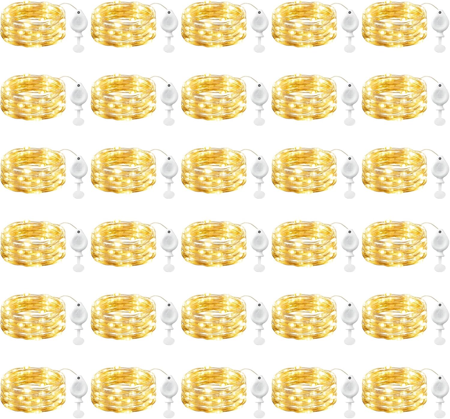 Brightown 30 Pack LED Fairy Lights Battery Operated String Lights, 7ft 20LED Waterproof Silver Wire String Lights, Firefly Starry Moon Lights for Mason Jars DIY Christmas Wedding Party Bedroom