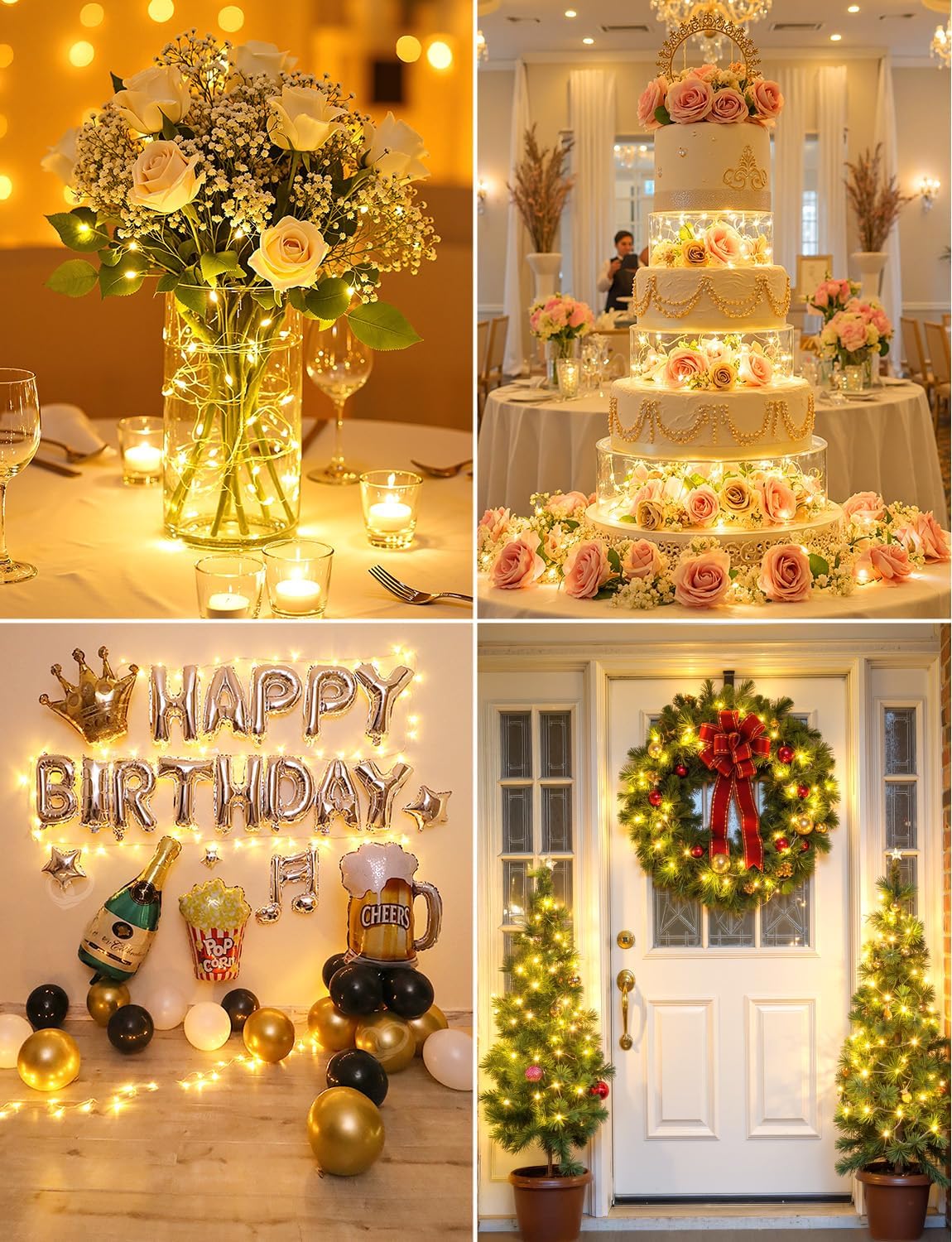 • [Romantic Your Moments and Brighten Your Life] Battery Operated Fairy lights is perfect for decorations and creating romantic atmosphere on Valentine's Day, Christmas decorations, Halloween, and any other important festivals.Perfect fairy lights for weddings, parties, mason jars, crafts, arts, trees, branches, plants, flowers, kids’ rooms, tents, bedrooms, living rooms, nurseries, cubicles, loft beds, windows, ceilings, walls, shelves, patios, porches, balconies, corridors, fences, staircases, awnings, bulletin boards, holiday, Christmas, winter wonderland decorations