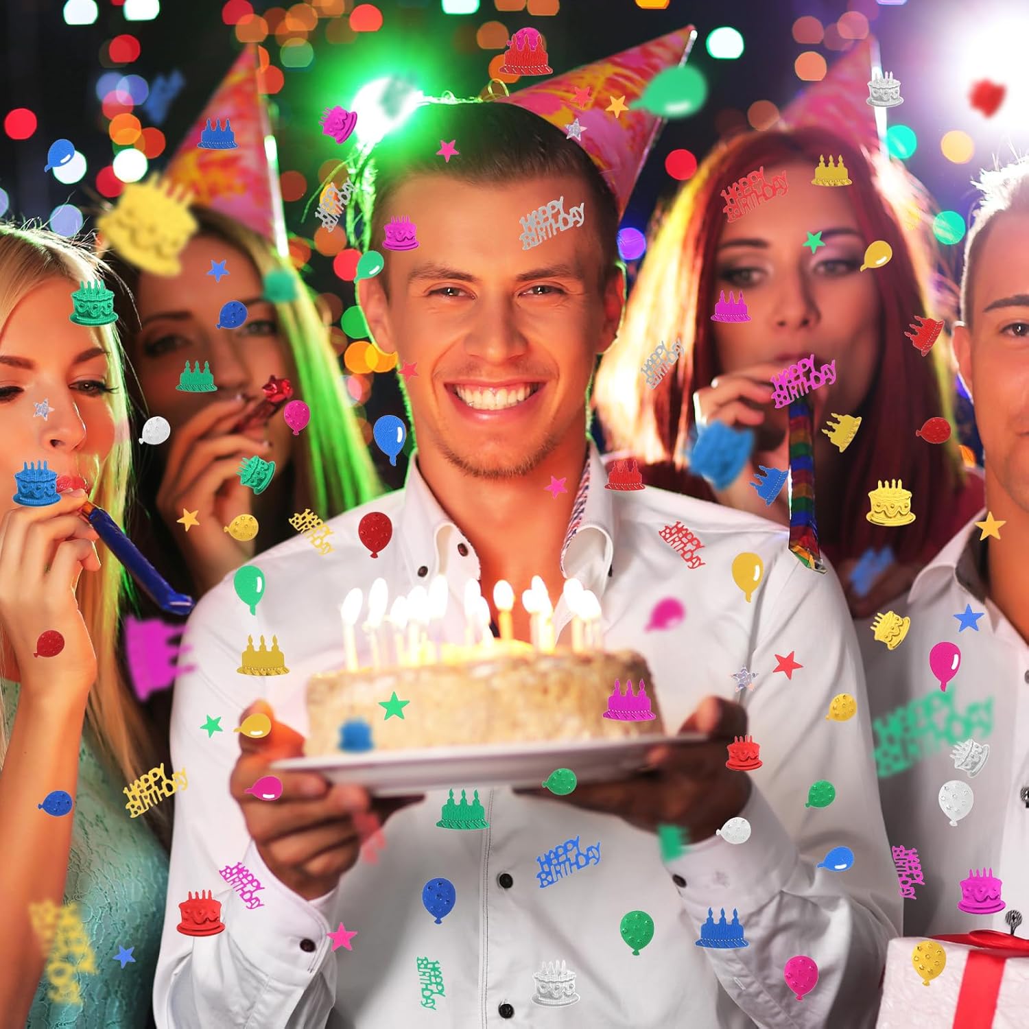 Happy Birthday Confetti Glitter Metallic Foil Table Confetti Multicolor Birthday Cake Balloon Sprinkles Table Centerpiece for Baby Shower Party Decorations DIY Arts and Crafting
