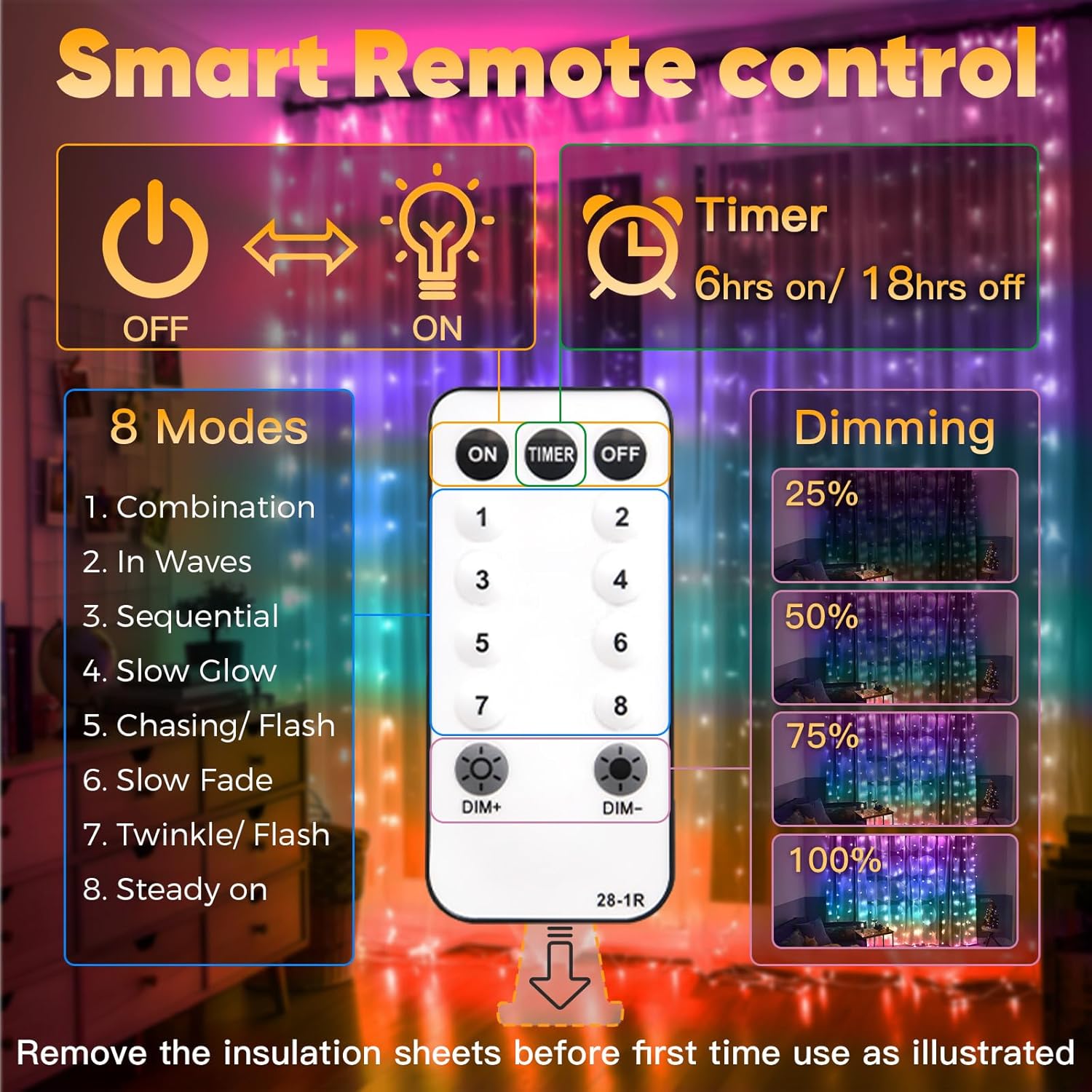 • 【Diverse Lighting Modes to Suit Every Mood】Equipped with a multifunctional remote control, the curtain lights offer 8 lighting modes. This includes a steady - on mode and 7 flashing modes such as waves, twinkling, and slow fading. Whether you're hosting a romantic dinner, a lively party, or having a relaxing bedtime routine, you can easily find the perfect lighting atmosphere.