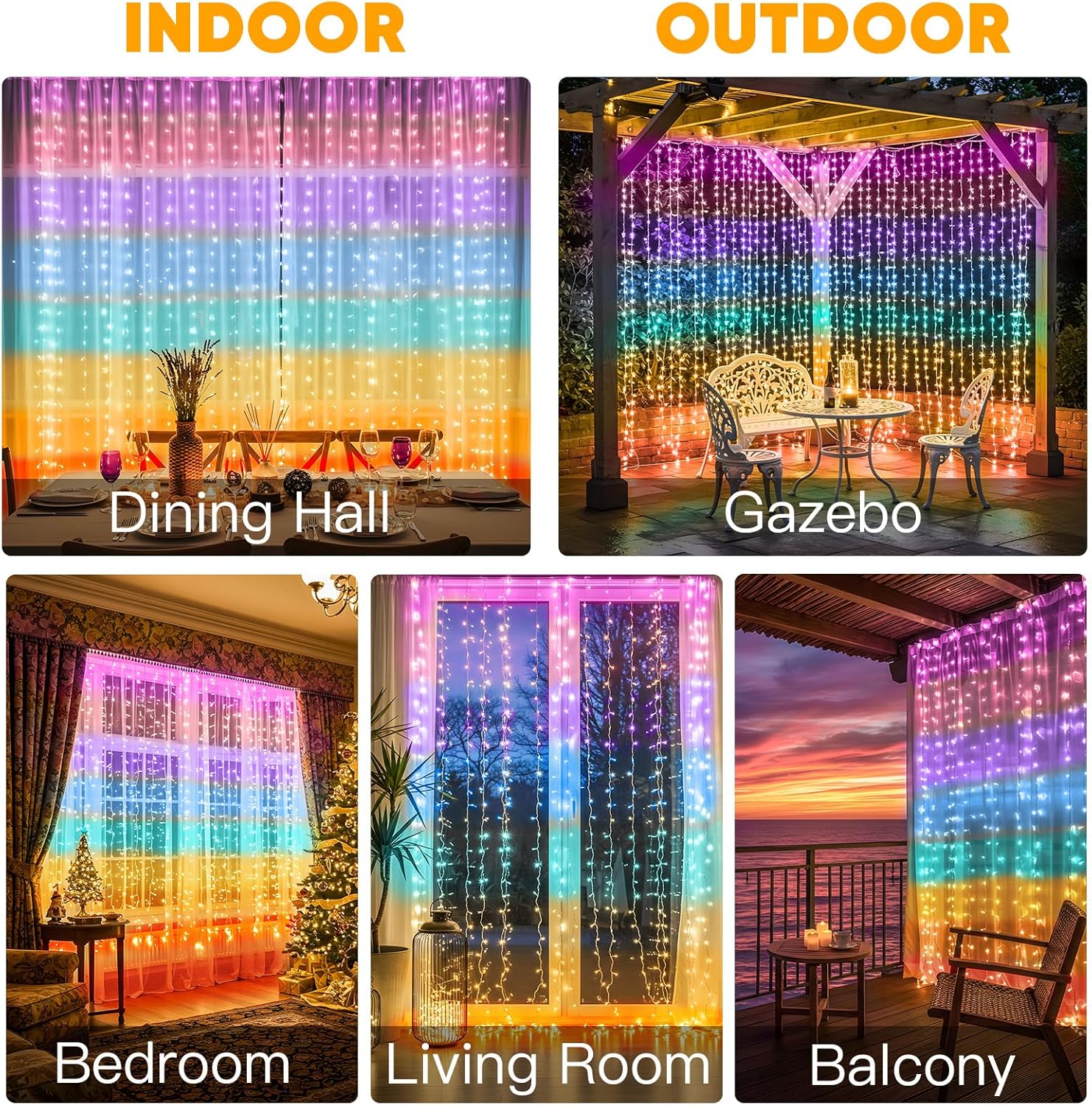 • 【Create a Captivating Ambiance】The color scheme of our 320 LED Colorful Curtain Lights is a vibrant symphony of hues. these lights can transform any space into a magical realm. Whether you're aiming for a lively, energetic atmosphere for a party or a soft, dreamy glow for a relaxing evening, they offer endless possibilities. They infuse every corner with a unique charm, creating unforgettable moments for you.