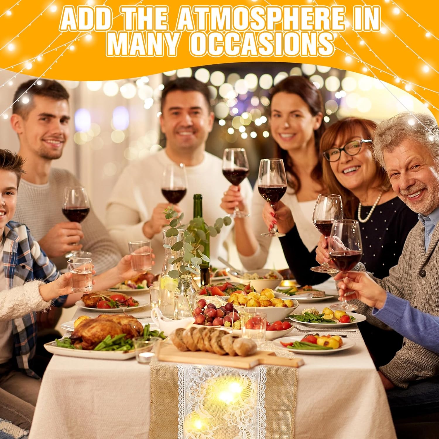 • Light-Up Rustic Elegance: Each burlap table runner features 40 hidden LED bulbs woven under lace, adding a warm glow to weddings, holiday dinners, or evening parties, creating a romantic and festive dining atmosphere