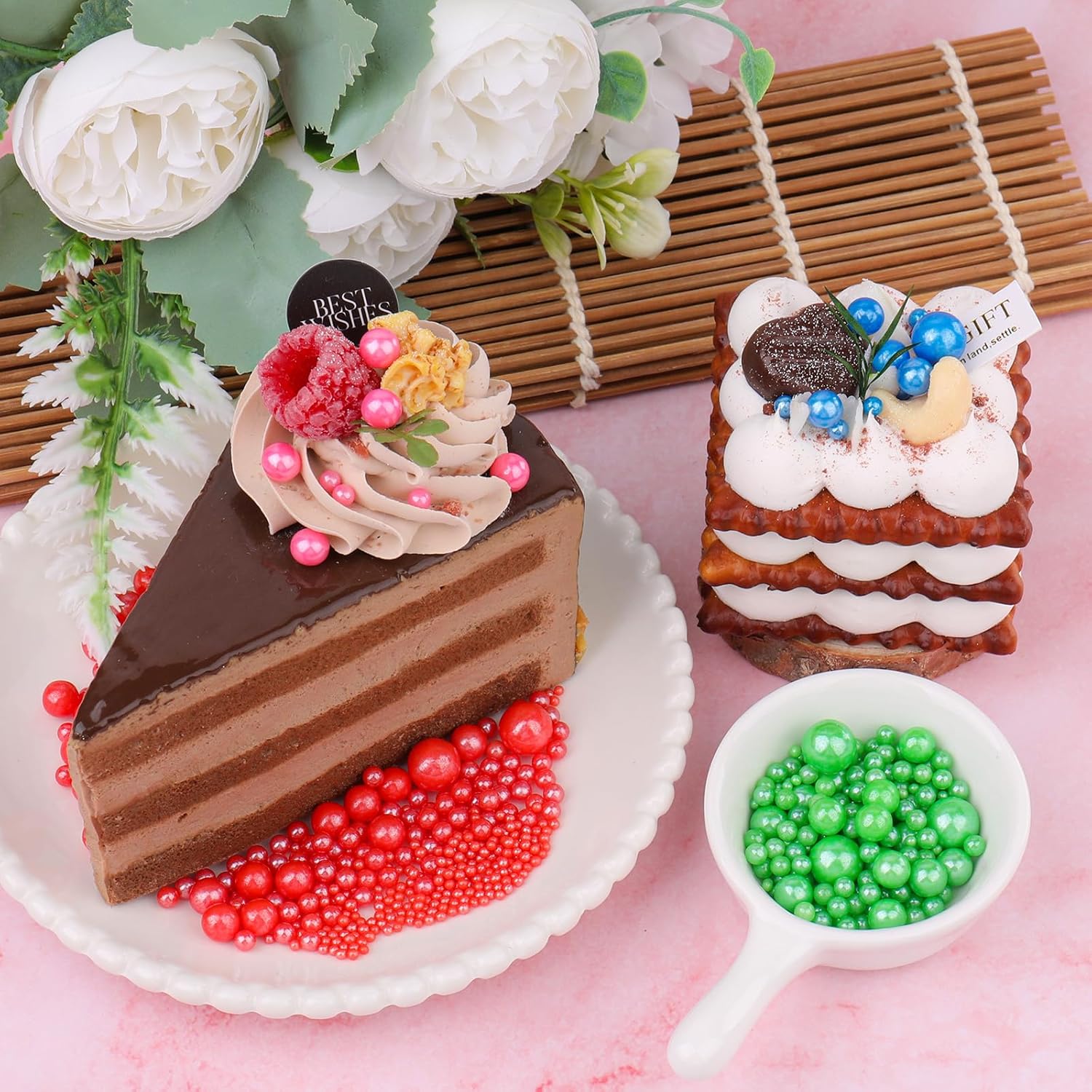 • 【Elegant Pearl Finish】Glossy edible pearls for cake decorating add sophistication to desserts. Transforms simple treats into professional-tier masterpieces with minimal effort