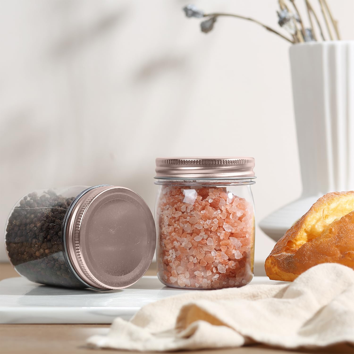 novelinks 8 oz Clear Plastic Jars with Screw-On Lids - BPA-Free Refillable Storage Containers for Slime, Spices, Crafts, Kitchen & Home Organization (48 Pack,Rose Gold)