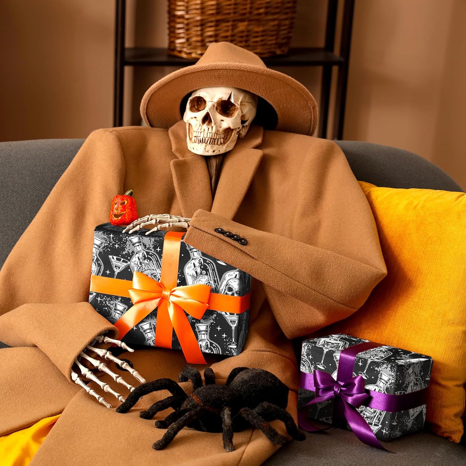 • Mini Roll Size: Measures 17 inches wide by 16.4 feet long—ideal for spooky gifts, Halloween favors, and gothic party packaging.