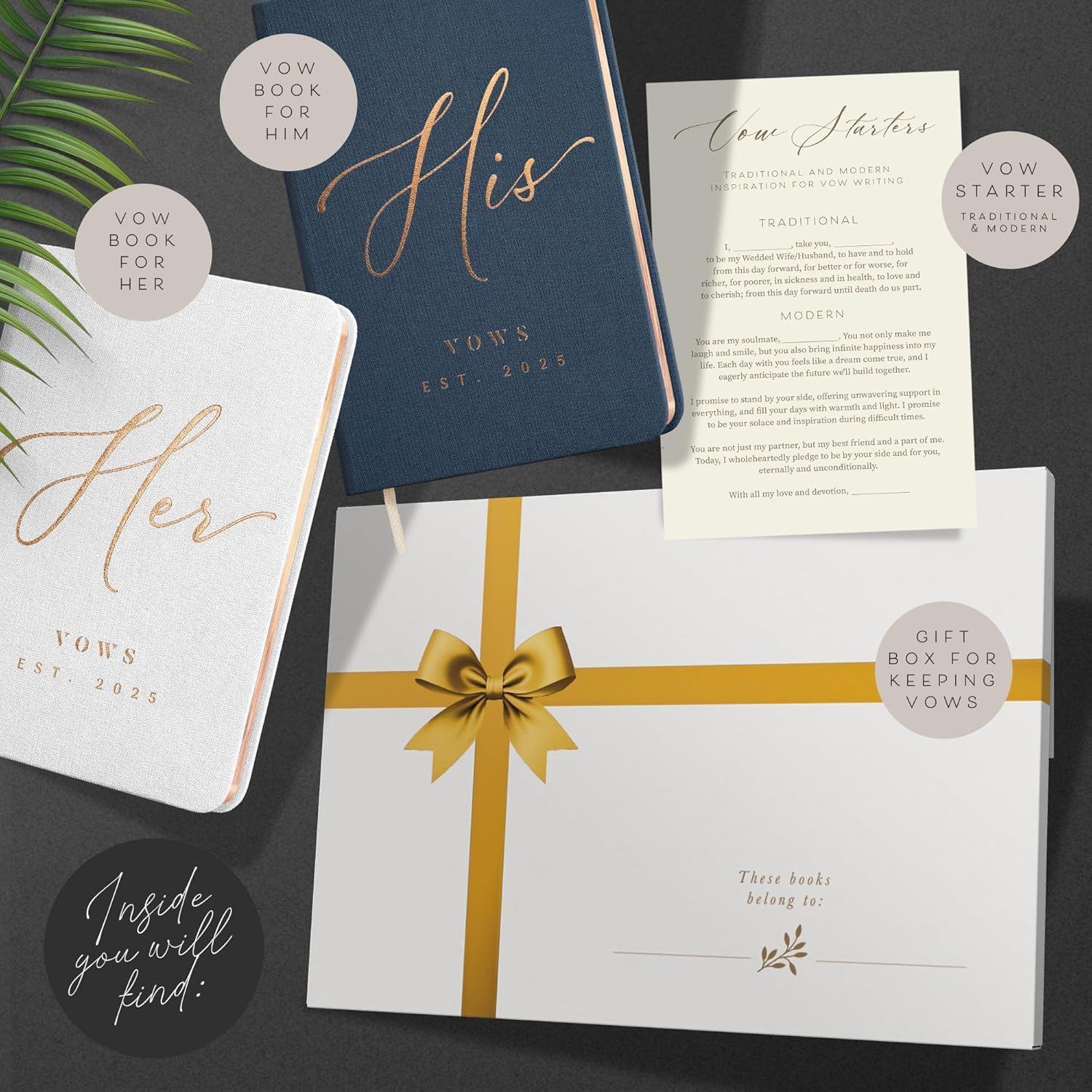 • LUXURIOUS WEDDING ESSENTIALS GOLD ACCENTS: All his her vows books feature gold-foiled “His” and “Her” engravings on the covers, and elegant gold-gilded page edges for a refined and sophisticated finish.