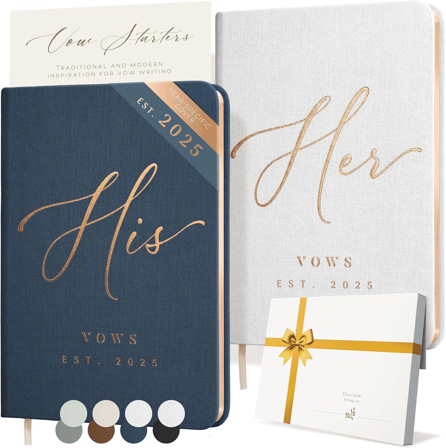 • PREMIUM LINEN VOW BOOKS SET: Each set includes two wedding decor vow books with a sophisticated linen-textured cover and a gold-foiled “2025” stamp, available in four elegant color combinations to match any bridal accessories or wedding stuff: Navy & White, Sage & Mint, Terracotta & Ivory, Black & White.