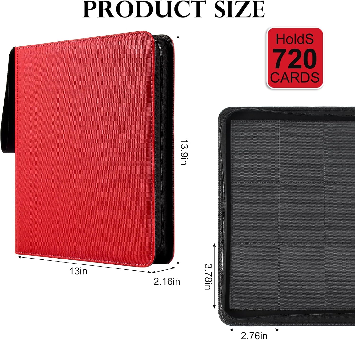• Large Capacity - With 30 double-sided pages and 12 pockets per page, this trading card binder can hold up to 720 cards. Provides plenty of space for you to organize all your trading cards.