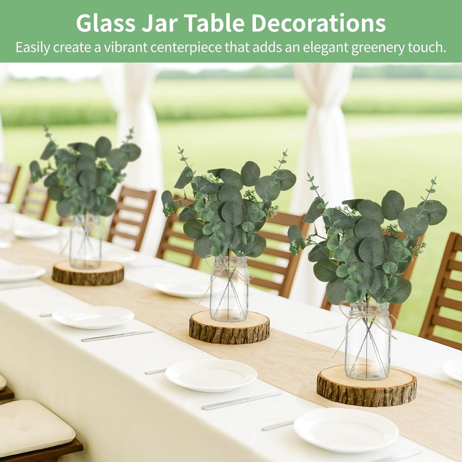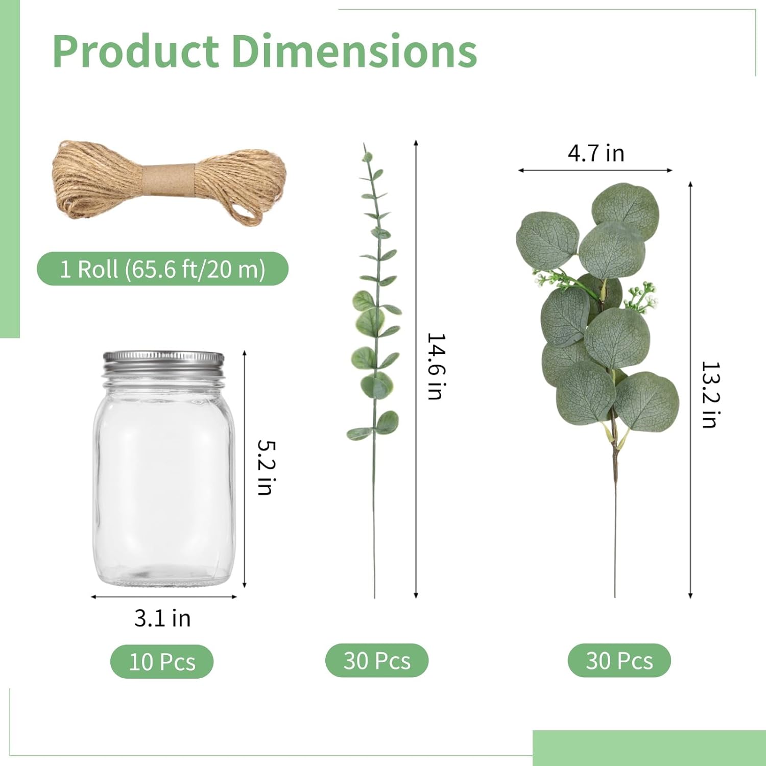 • Instant Centerpieces for Tables: 10 clear glass mason jars 17 oz with rope plus artificial eucalyptus and gypsophila ready for wedding table centerpieces reception table decorations and everyday home decor