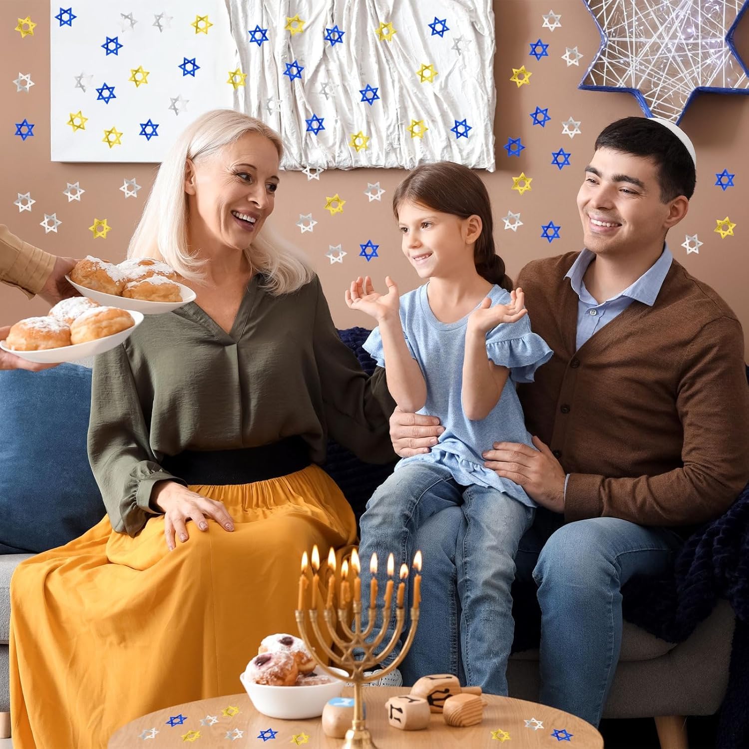 • Hanukkah Themed Design: The design of Chanukkah confetti is inspired by the classic Star of David, showing exquisite details and elegant appearance. Compared with the traditional tissue paper confetti, these Hanukkah decoration are thicker, heavier and more textured, which is very suitable for filling the Jewish holiday table and adding a unique decorative effect to your party