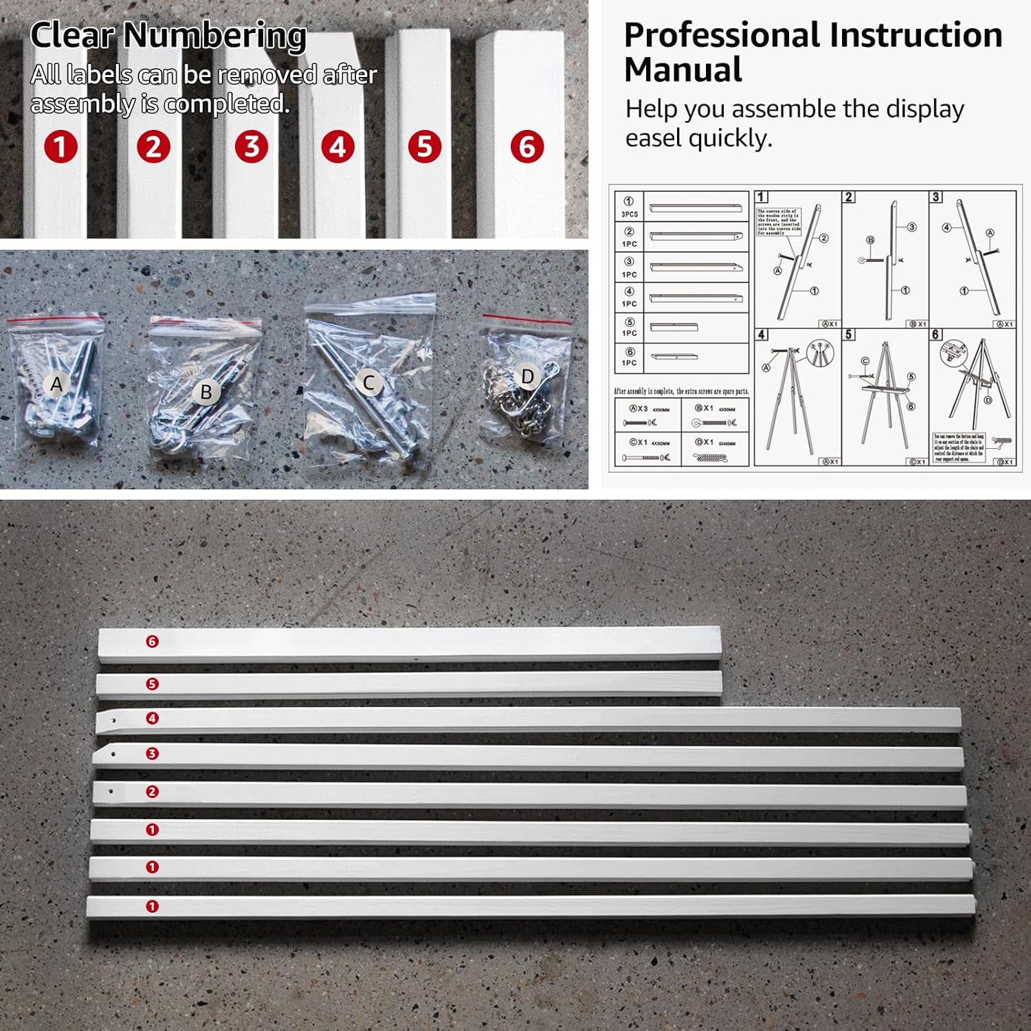 • Easy to Assemble Display Easel: Each wooden component is connected by wing nuts and bolts, allowing assembly without the need for tools. It comes with detailed assembly instructions, and each part is clearly labeled for easy identification and assembly