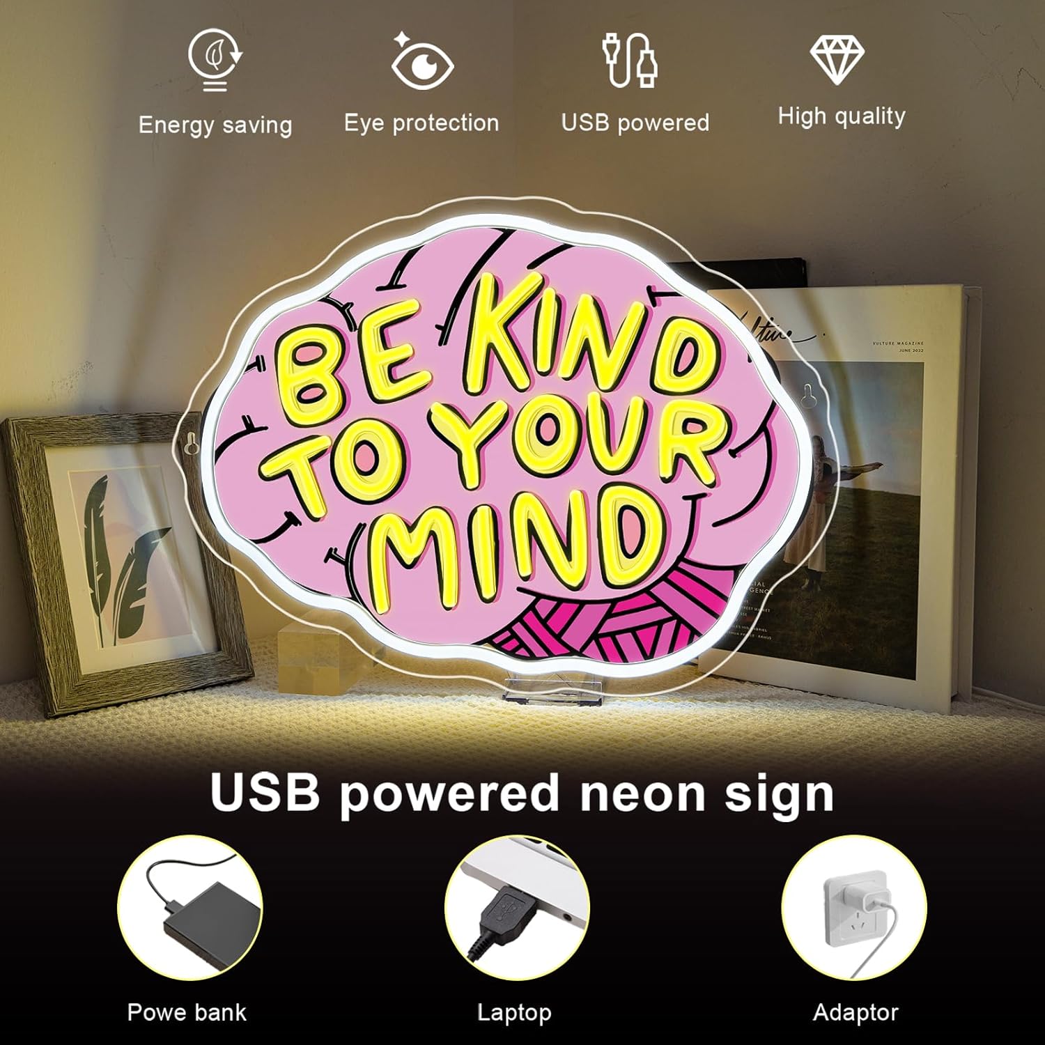 • UNIQUE DESIGN: The text "Be Kind To Your Mind" is marked on the brain pattern, bold and charming, easily becoming the visual focus in the space