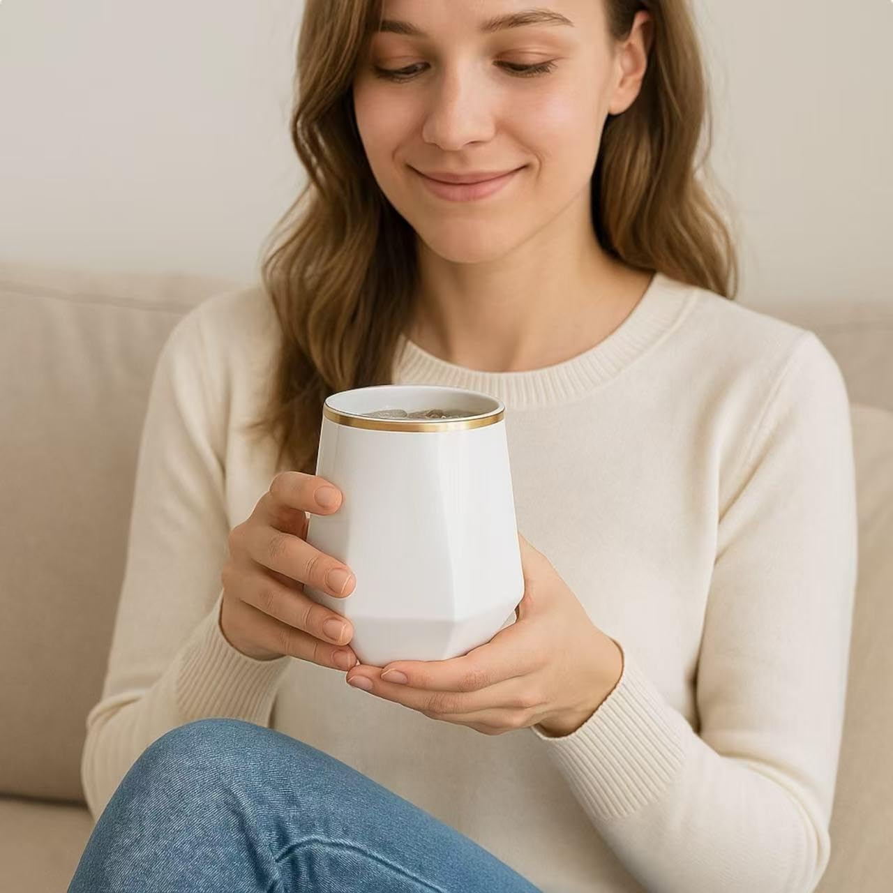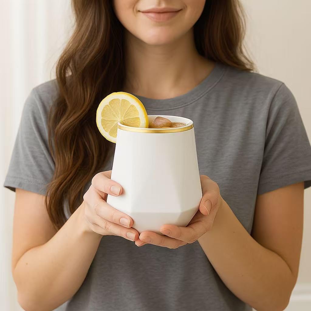 40 count Diamond Unbreakable Stemless Plastic Wine Champagne Whiskey Glasses Elegant Durable Disposable Indoor Outdoor Ideal for Home, Office, Bars, Wedding, 12 Ounce Cups (Diamond White Matte Gold)