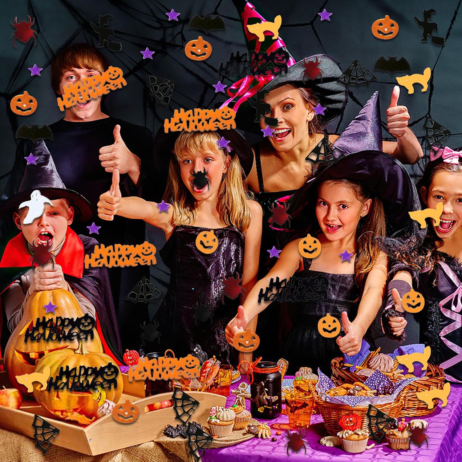 • Classic Halloween Design: A variety of classic Halloween elements and colors, include spider web, purple spider, pumpkin, cat, bat,witch,skull, ghost, which are mixed with glitter stars to help you decorate your Halloween party