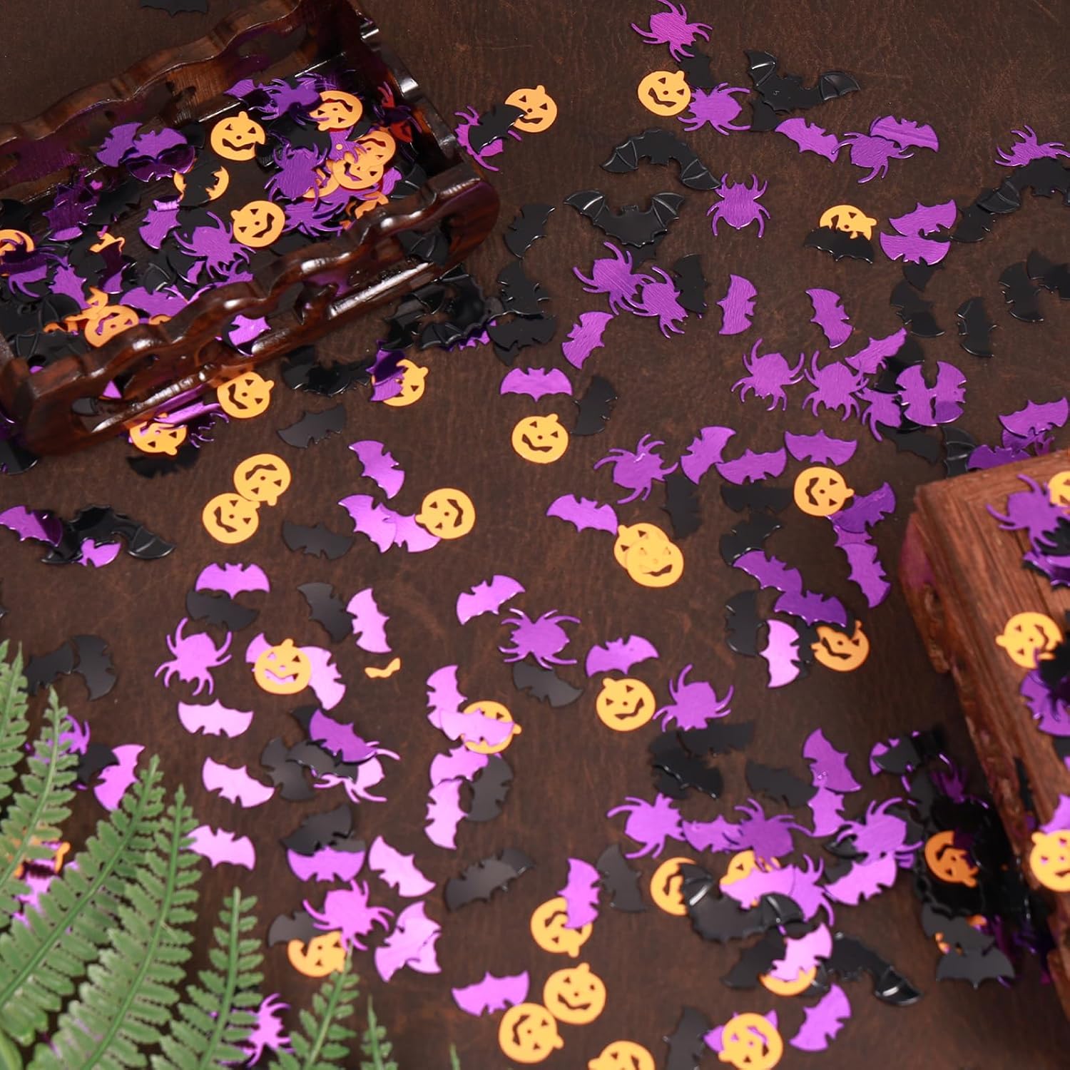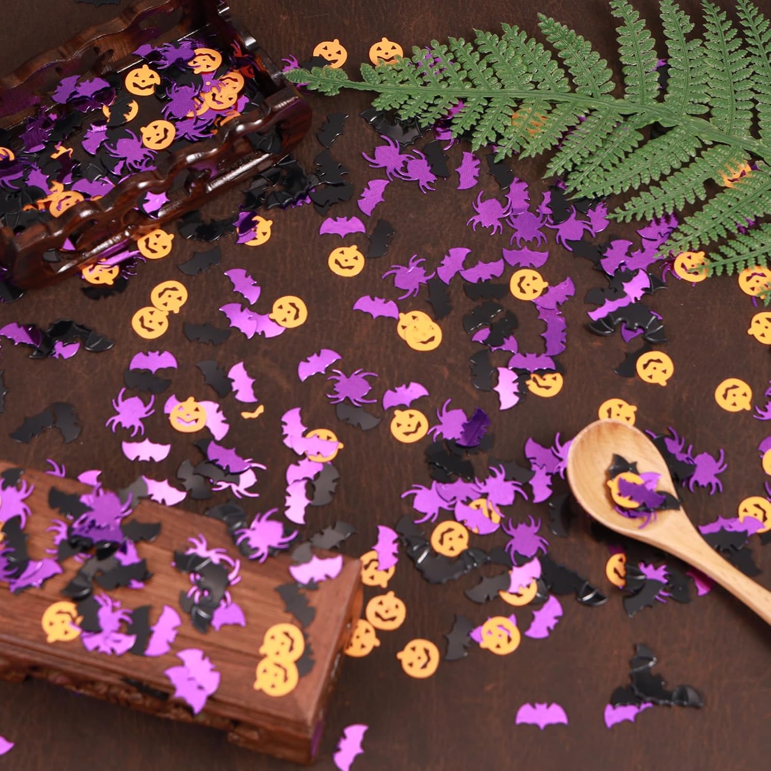 Halloween Party Table Scatter Confetti, 3000 Pcs Pumpkin Spider Bat Foil Metallic Confetti for Halloween Party Table Decorations