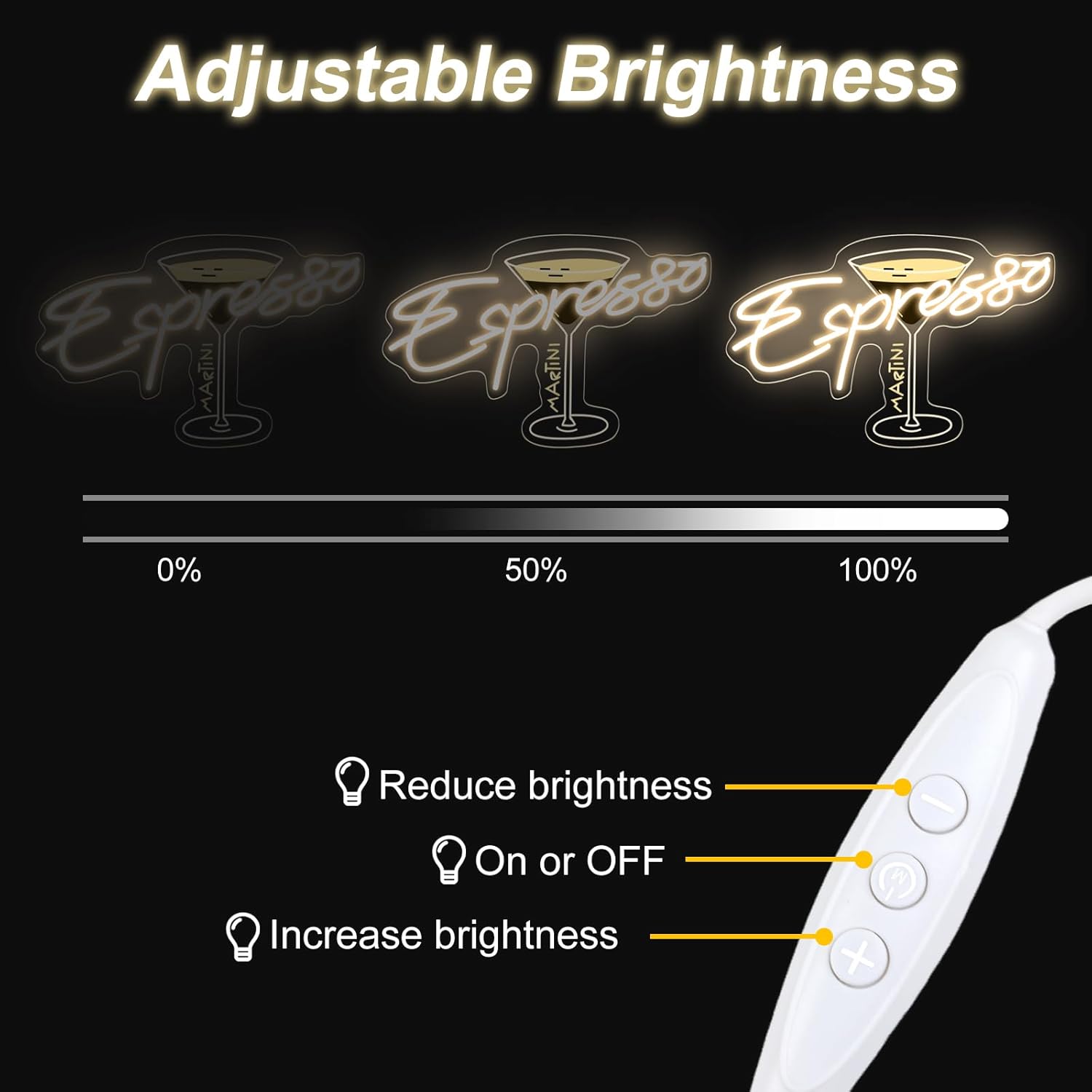 • Easy to Use: The LED neon light features USB connector and dimmable settings, allowing you to freely adjust the brightness to suit the atmosphere you desire. You can power the neon LED sign with a mobile power bank, USB ports, computers and so on
