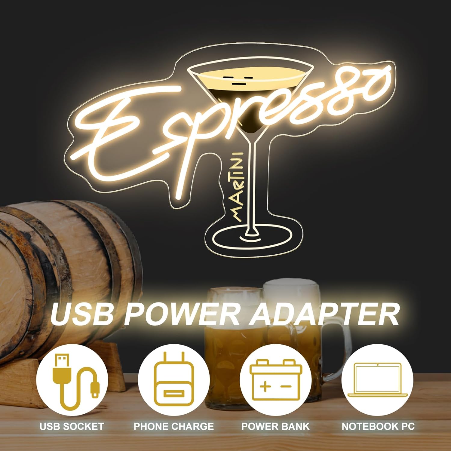 Espresso Martini Neon Sign, Cocktail Club Wall Art Decor,Tini Time Wall Decor,Martini Lover Gift,Retro Espresso wall sign,Retro Alcohol Gift, 16.5"x11.6"