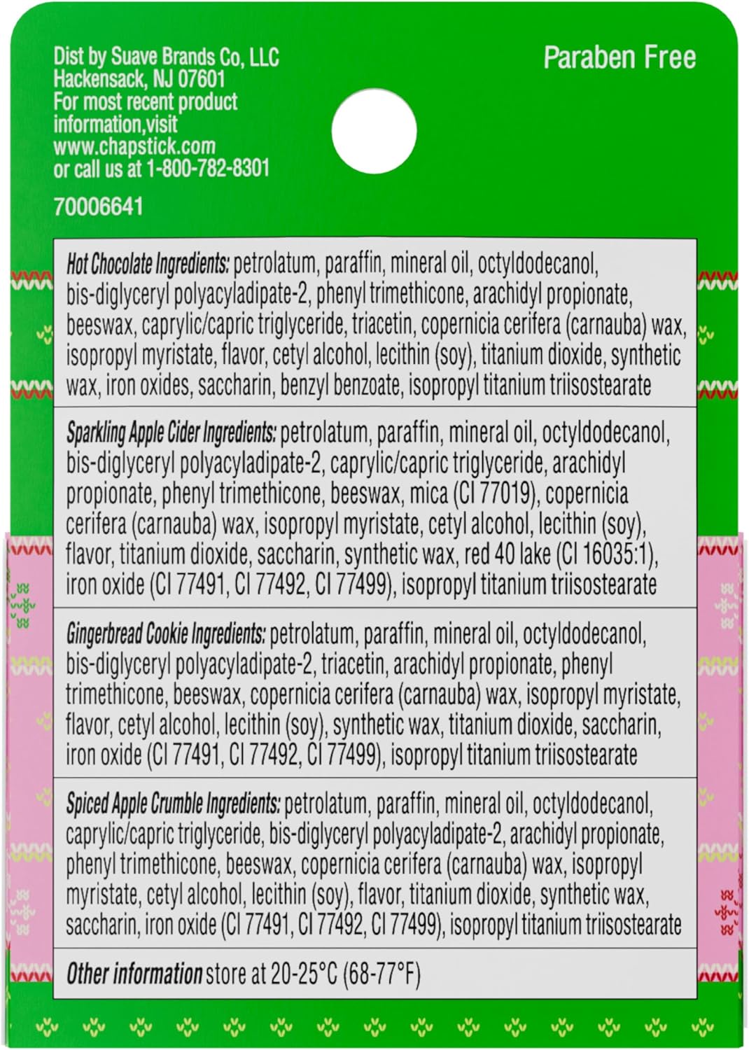 • LIMITED-EDITION HOLIDAY FLAVORS: Classic ChapStick hydration meets festive flair with limited-edition flavors like Hot Chocolate, Sparkling Apple Cider, Candy Cane, Gingerbread Cookie, Spiced Apple Crumble, and Holiday Nog, perfect for gift-giving or a little seasonal self-care