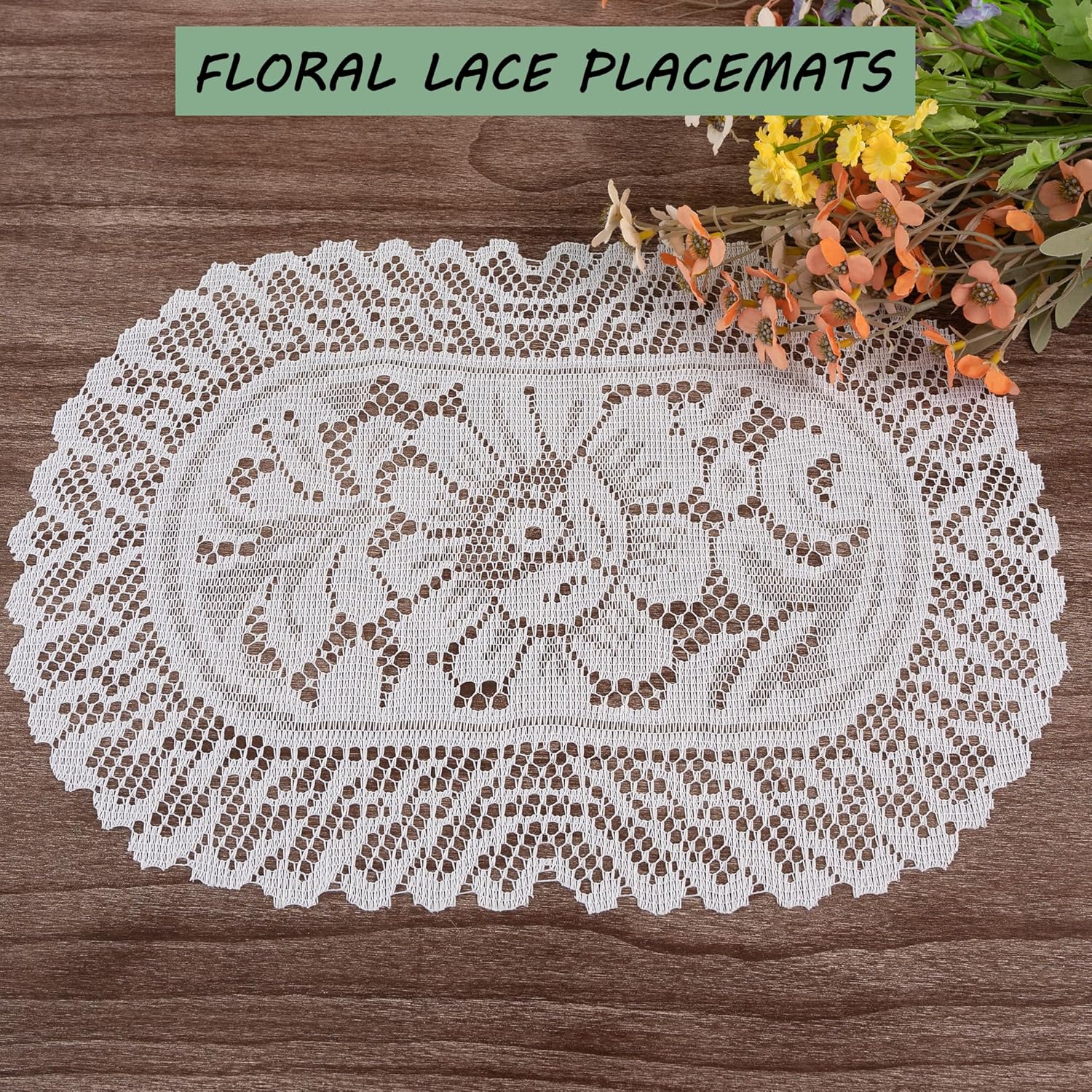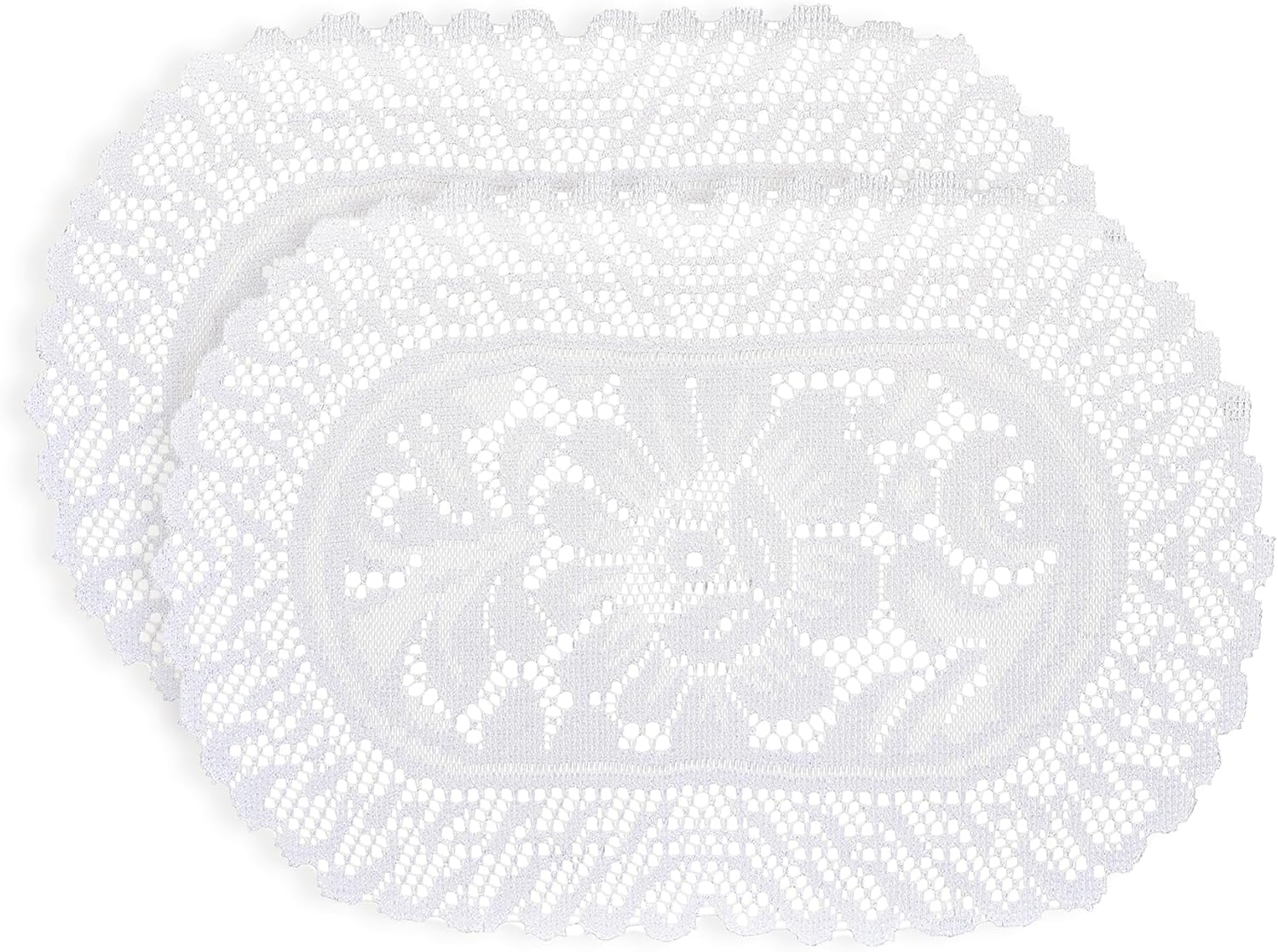 2PCS Oval Lace Placemats for Dining Table, White Lace Placemats Doilies, Embroidered Table Mats Farmhouse Cup Mat Vase Mat, 12x17 Inch