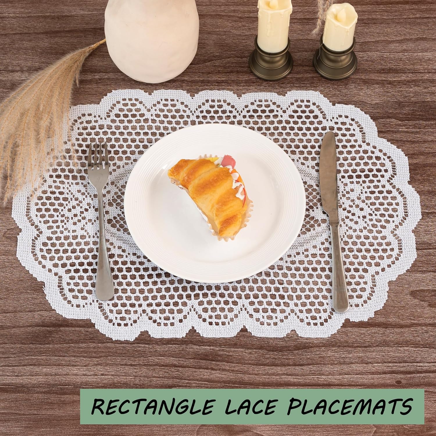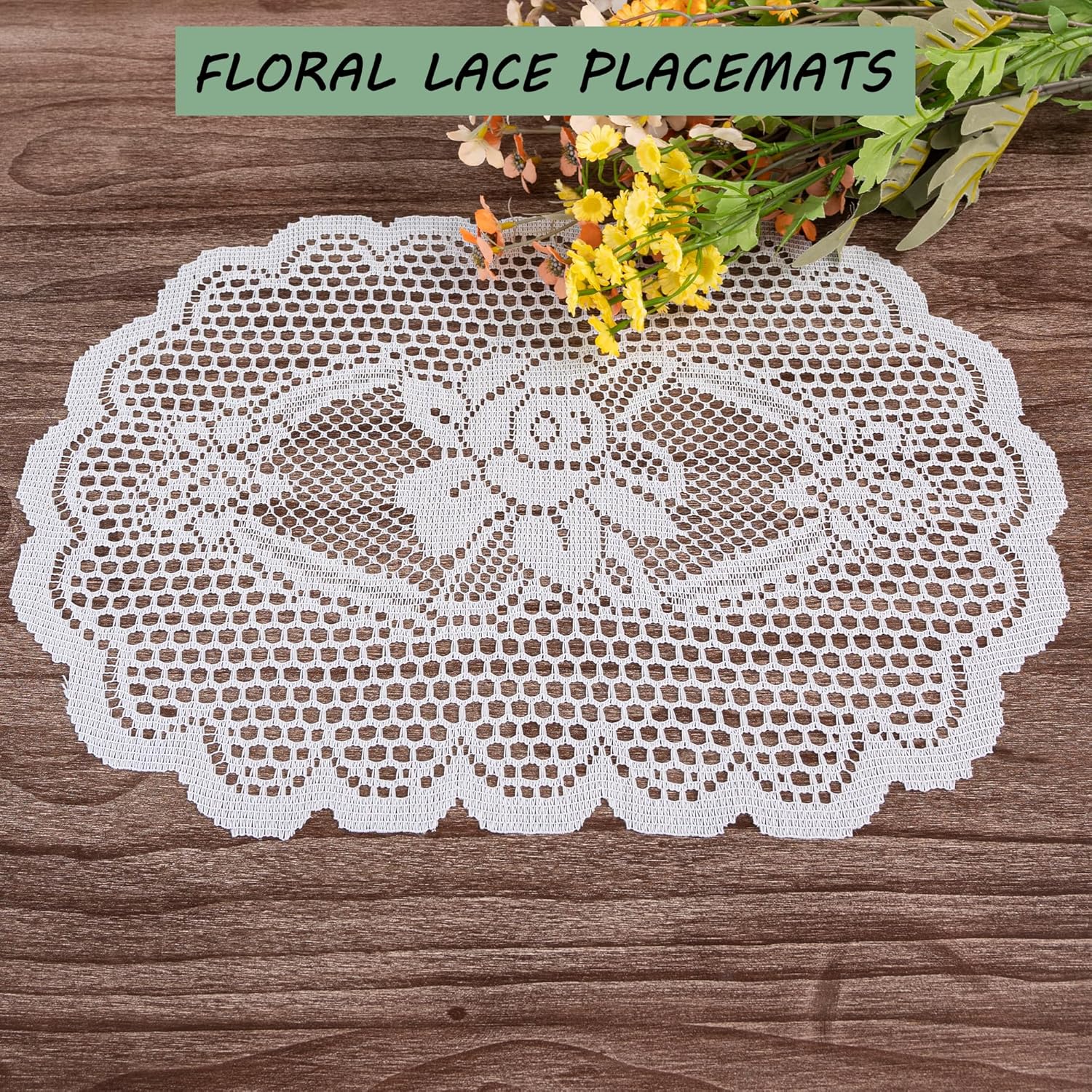 2PCS Oval Lace Placemats for Dining Table, White Lace Placemats Doilies, Embroidered Table Mats Farmhouse Cup Mat Vase Mat, 12x17 Inch