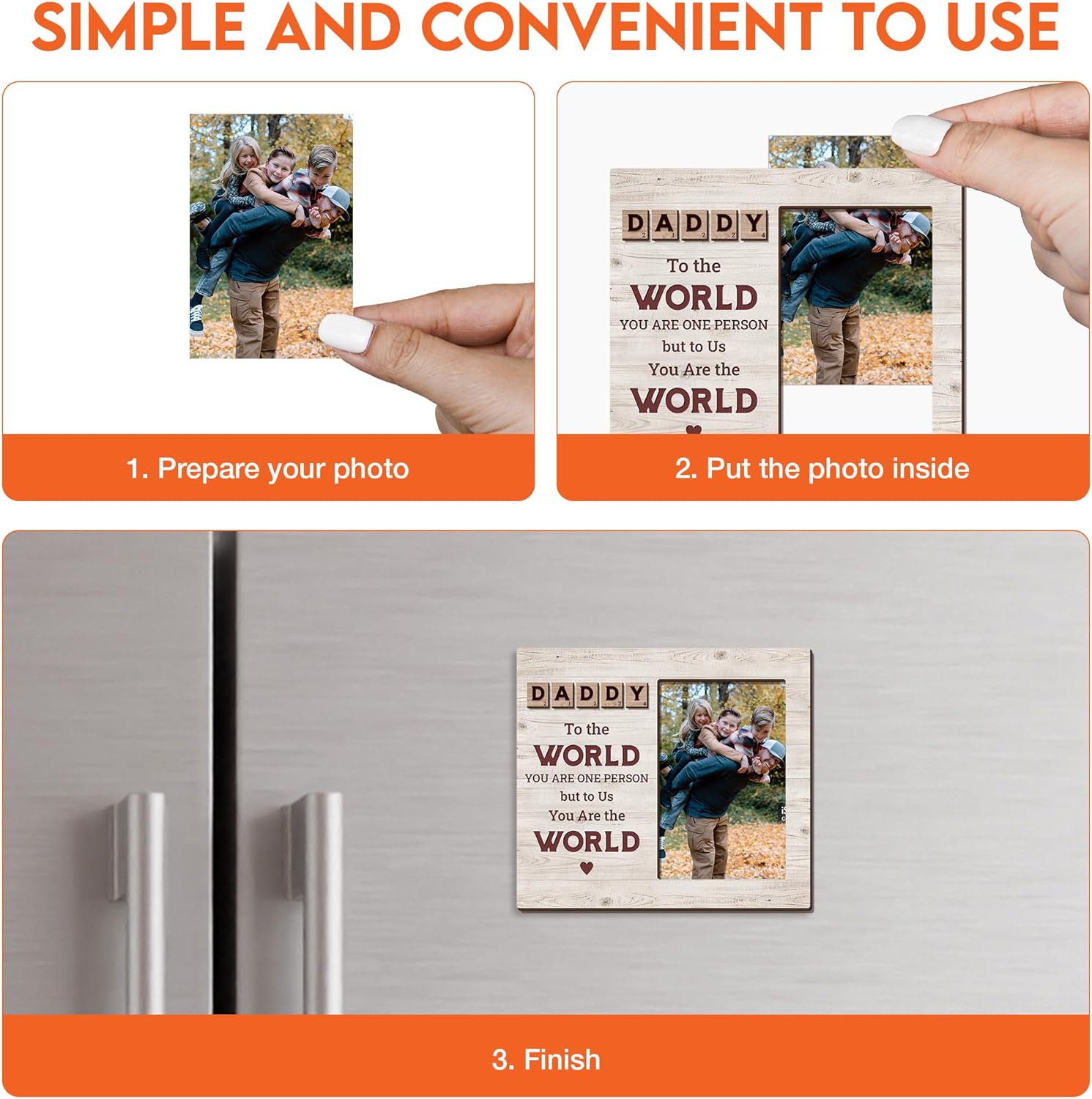 Magnetic Picture Frames - DADDY YOU ARE THE WORLD - Christmas Gift Birthday Gift for Dad - Unique Magnet Photo Frame For Men - Magnetic Frames for Refrigerator, Locker & More