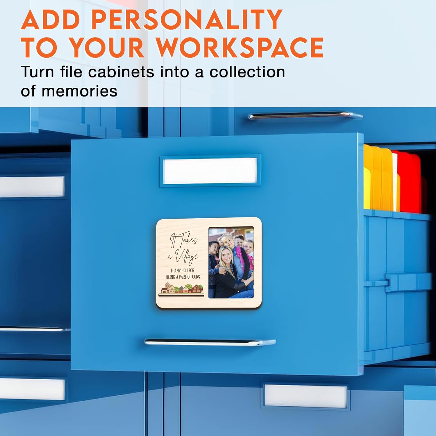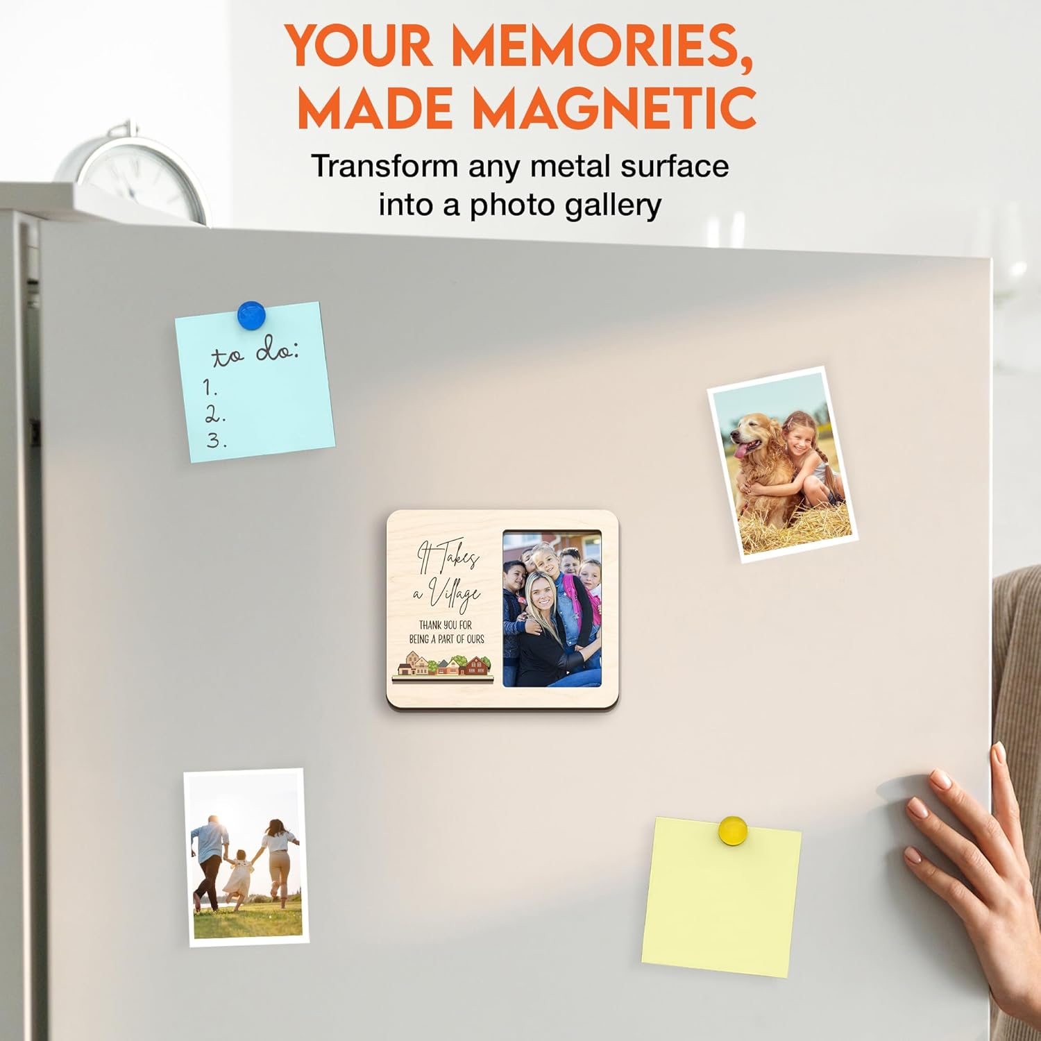 • 🏘️ Community Appreciation Gift – These magnetic picture frames display the message 'It takes a village – Thank you for being a part of ours.' A wonderful gift for teachers, caregivers, or supportive friends and family.