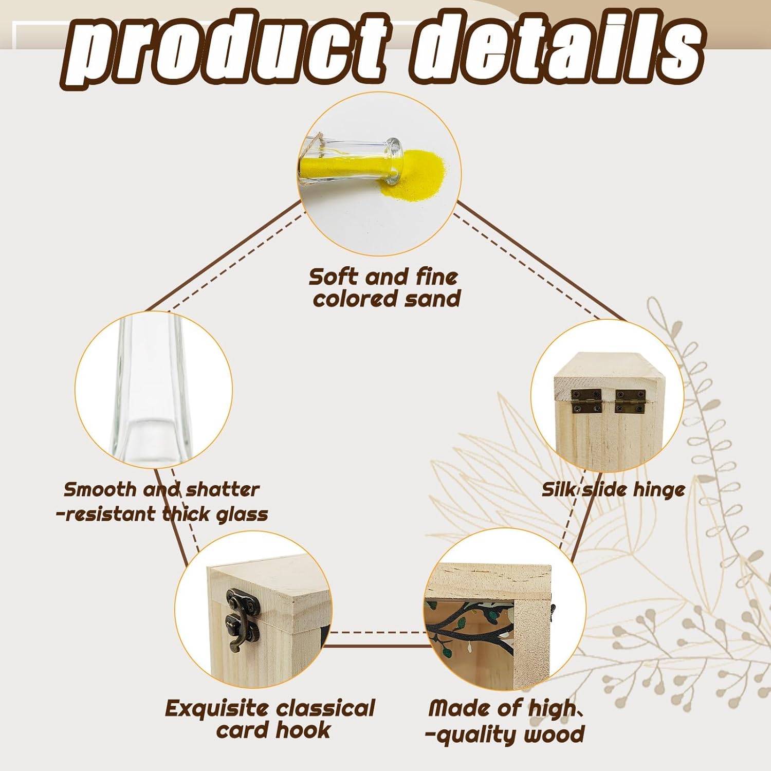 • 【Excellent Quality】Our sand ceremony set box is made of high-quality solid wood, hand-polished and processed to a smooth surface that is not easily damaged; the glass vases are made of transparent high-hardness glass with smooth and beautiful lines that are not easily broken; the colored sand is even in texture, has high flowability, and has beautiful and elegant colors, making your wedding ceremony noteworthy.