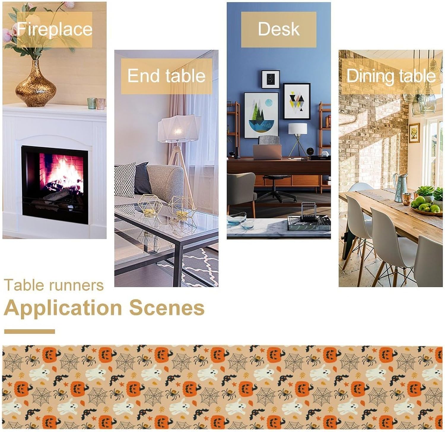 Halloween Table Runner,Cute Ghost Pumpkin Leaves Table Runner for Kitchen Dining Table Decoration Home Party Decor 13x108 Inch