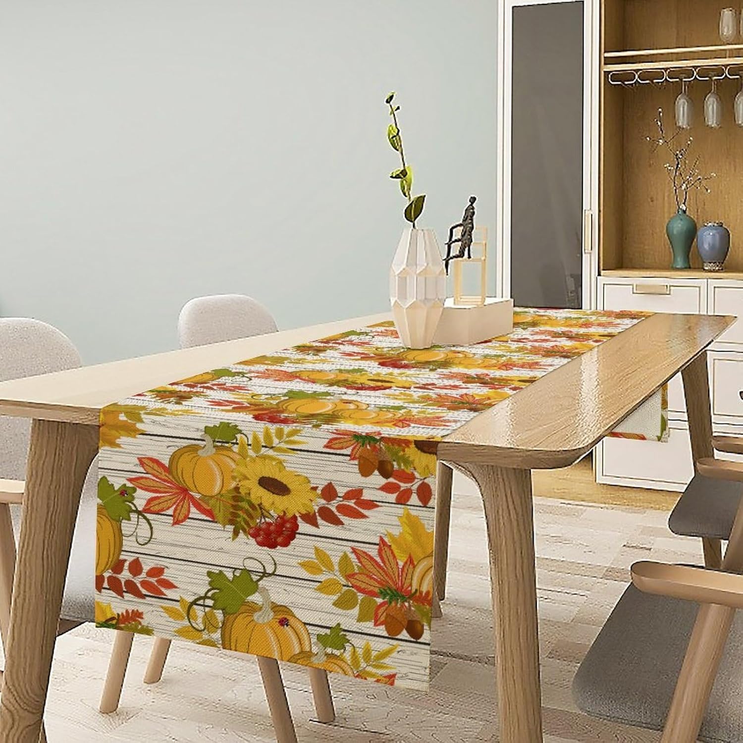 Autumn Table Runner,Seasonal Pumpkins Thanksgiving Kitchen Dining Table Decoration for Home Party Decor 13x36 Inch