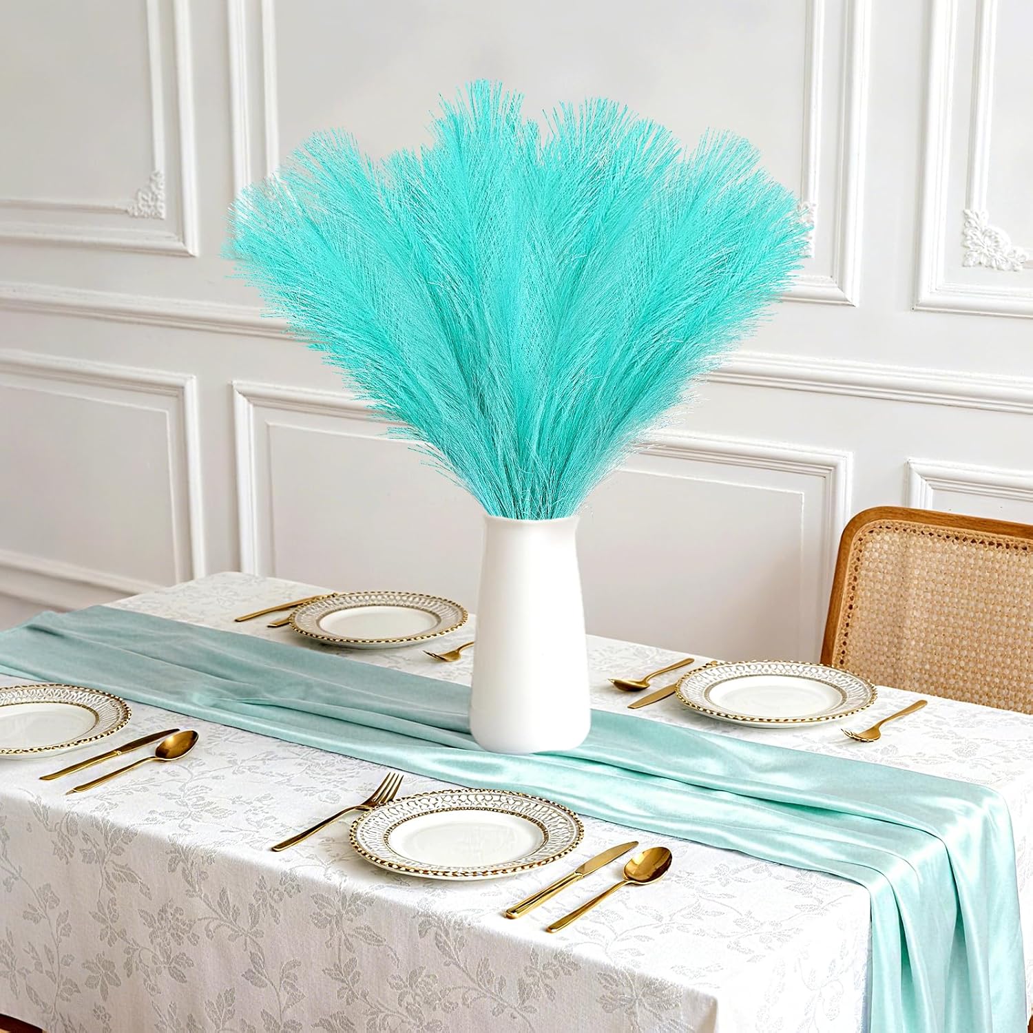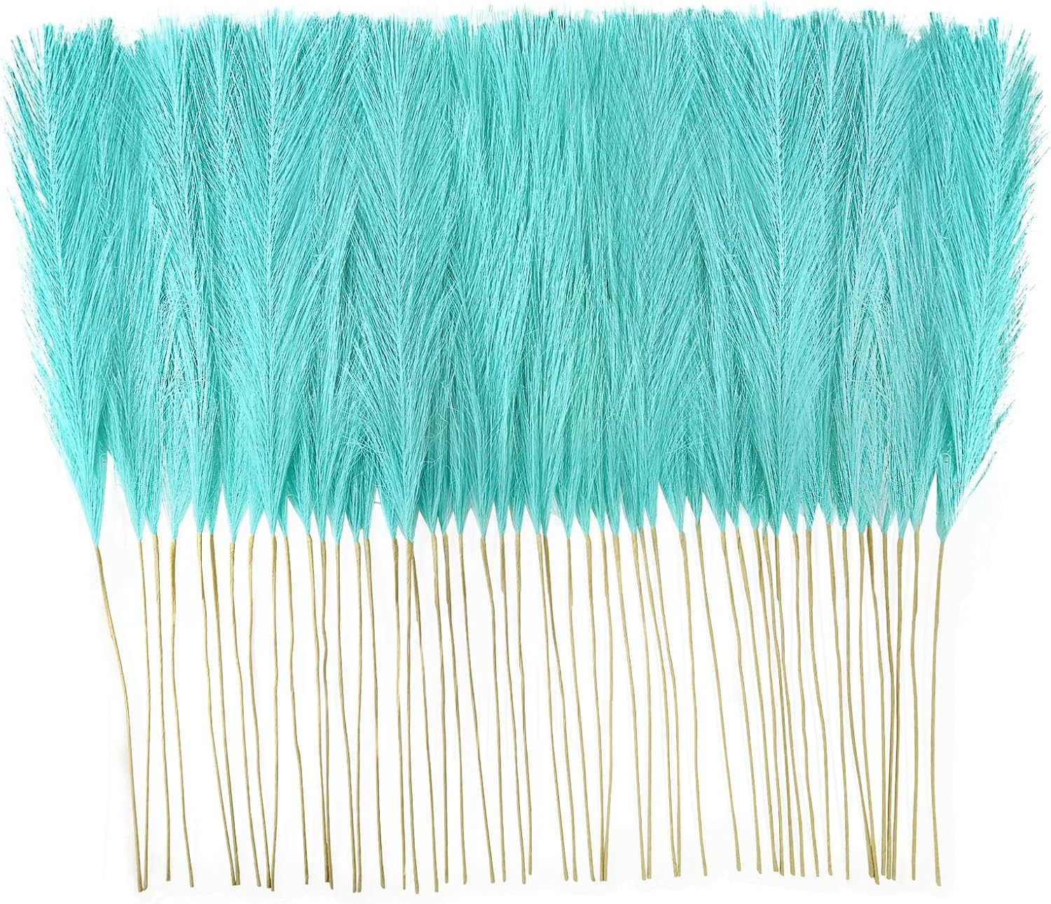 50pcs Faux Pampas Grass, 21.6" Short Artificial Pompous Grass Branches for Vase Filler Home Table Centerpieces Wedding Decor (Sky Blue)