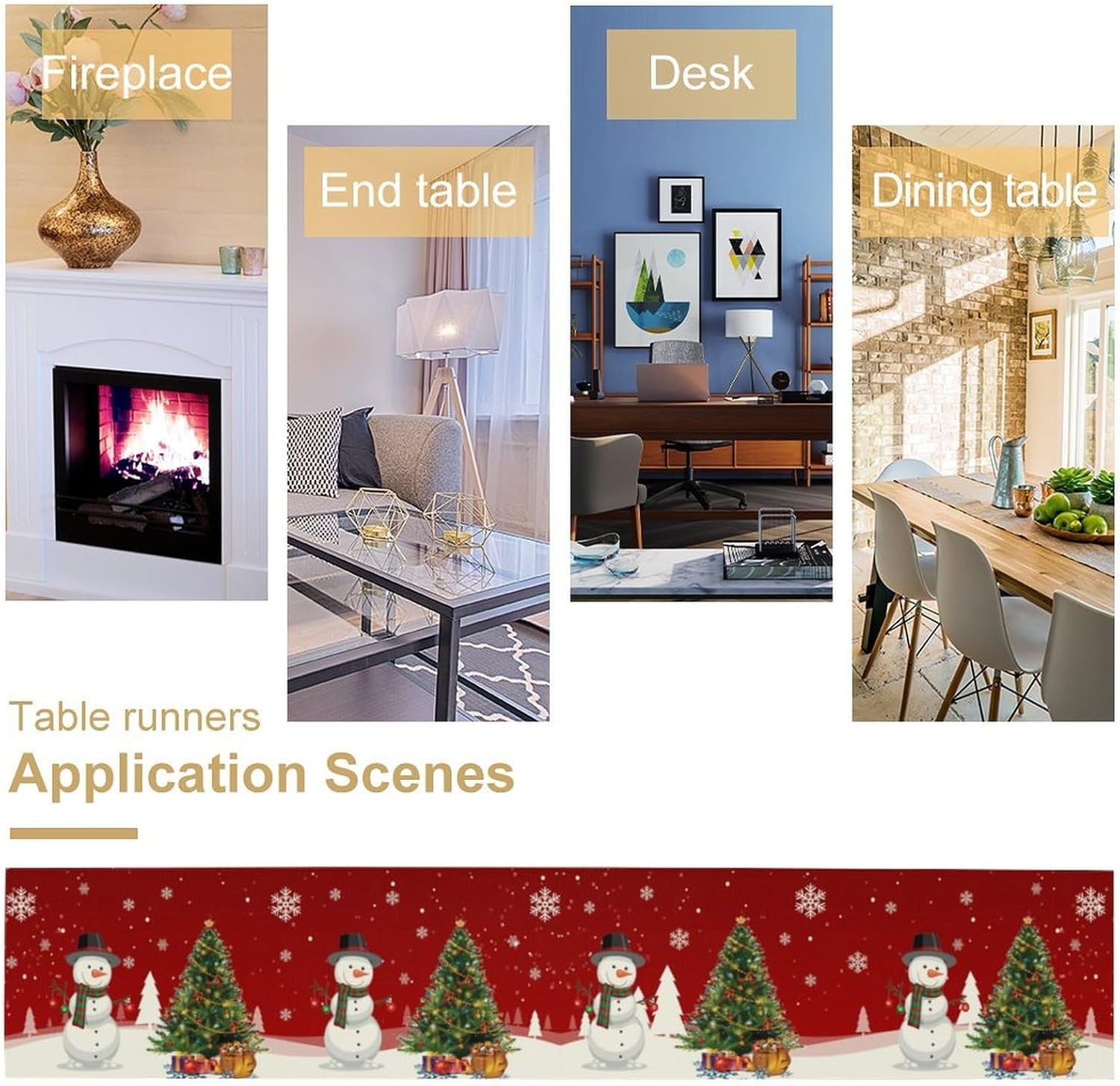 Christmas Table Runner,Snowman Rustic Red Snowflake Winter Table Cloth Kitchen Dining Table Decoration for Home Party Decor 13x108 Inch