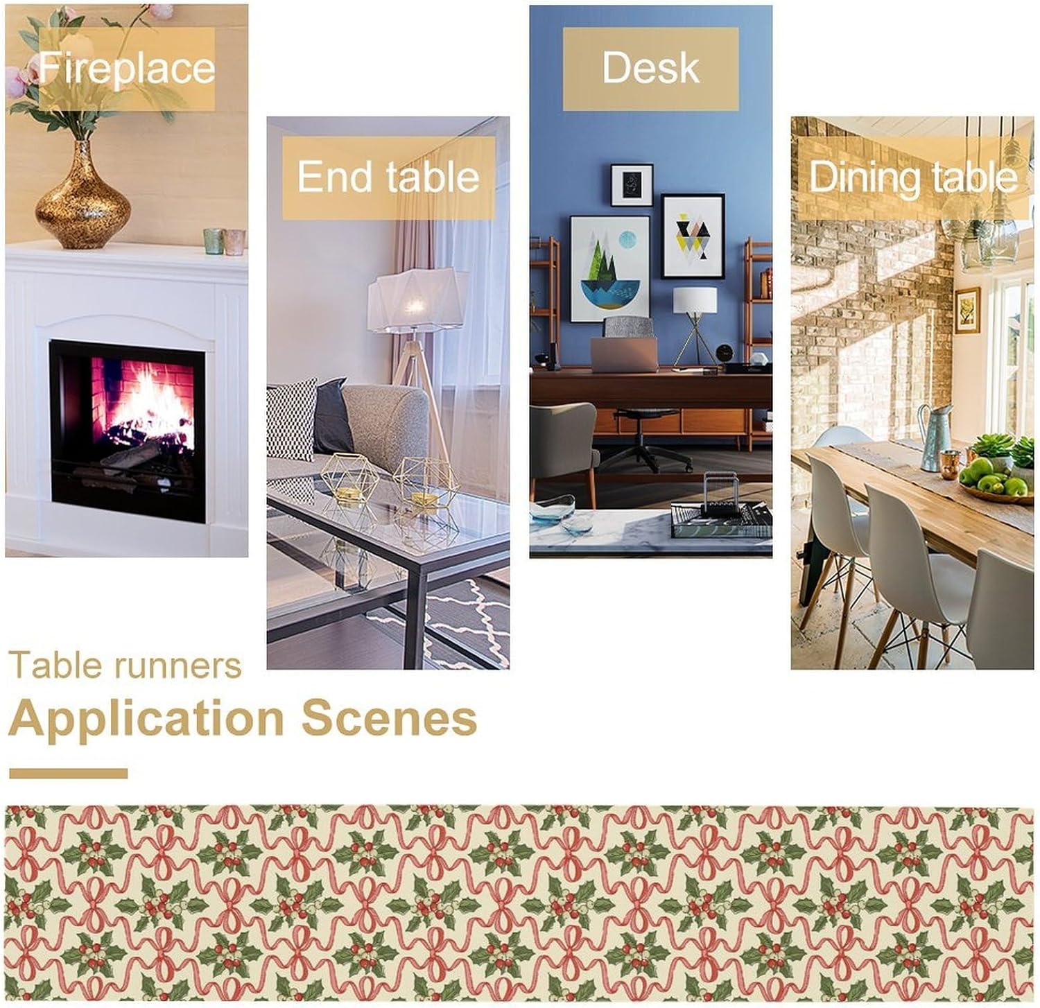 Christmas Table Runner,Xmas Holiday Bowknot Decor Table Cloth Kitchen Dining Table Decoration for Home Party Decor 13x36 Inch