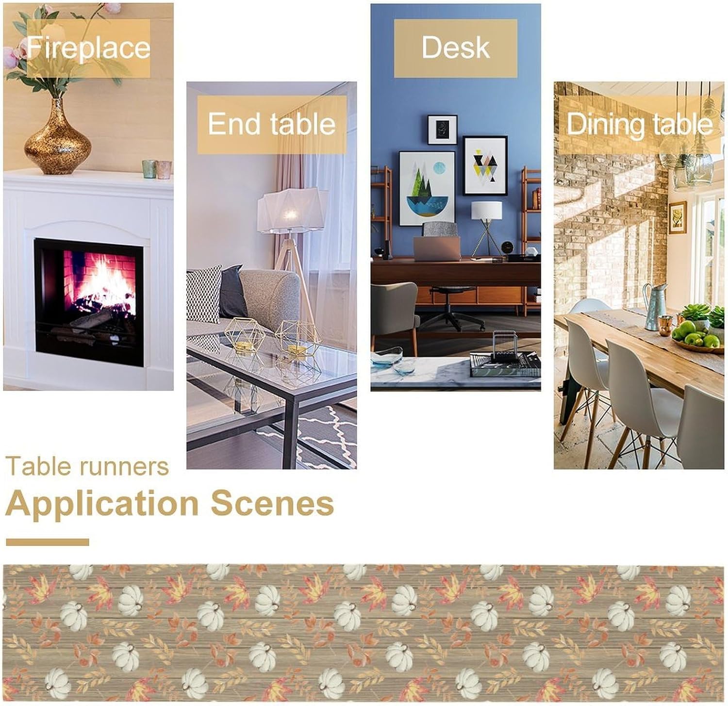 Autumn Table Runner,Pumpkins Maple Leaves Wood Fall r Seasonal Table Runner Kitchen Dining Table Decoration for Home Party Decor 13x60 Inch
