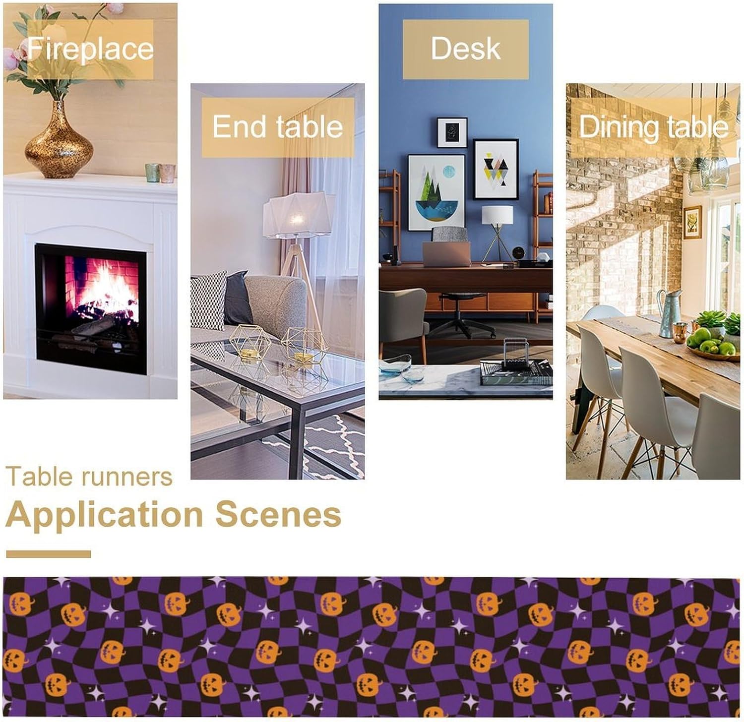 Halloween Table Runner,Purple Checkered Pumpkin Table Runner for Kitchen Dining Table Decoration Home Party Decor 13x108 Inch