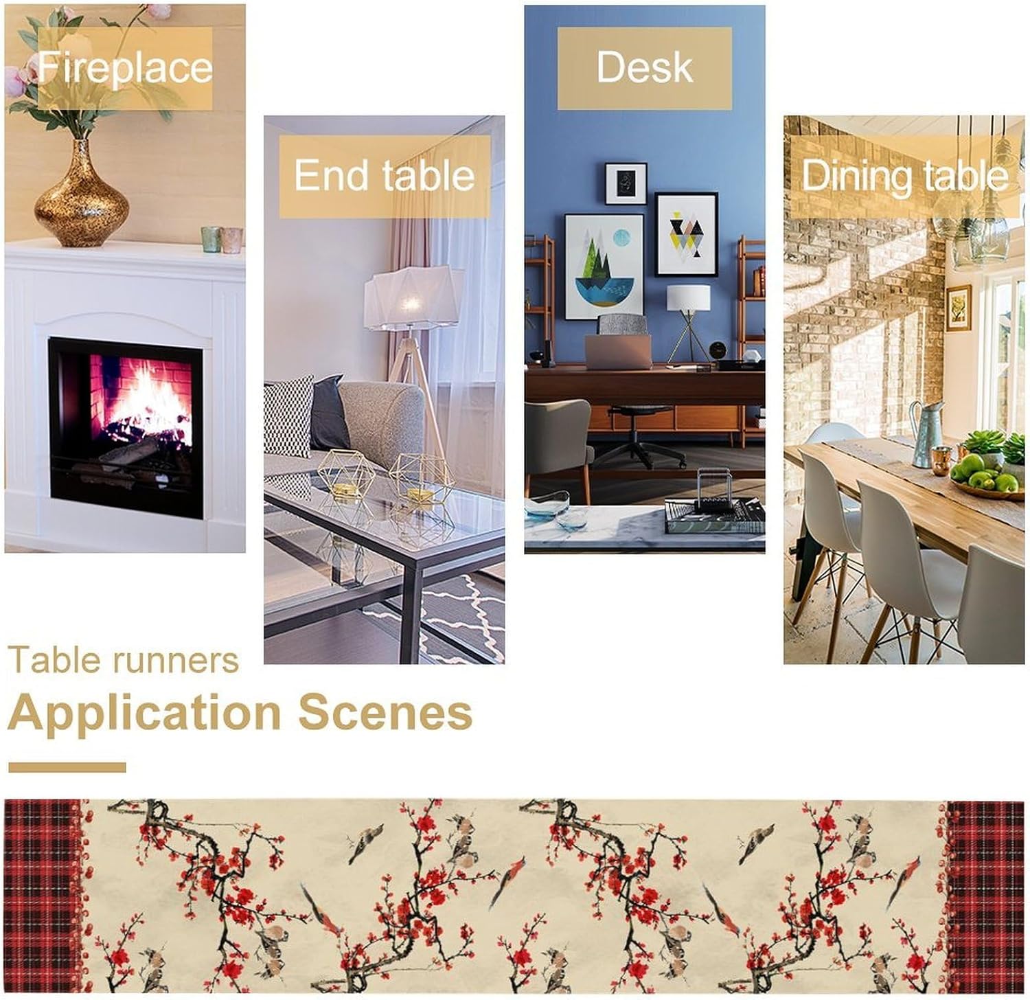 Bird Table Runner,Red Black Buffalo Plaid Blossom Seasonal Table Runner for Kitchen Dining Table Decoration Home Party Decor 13x108 Inch