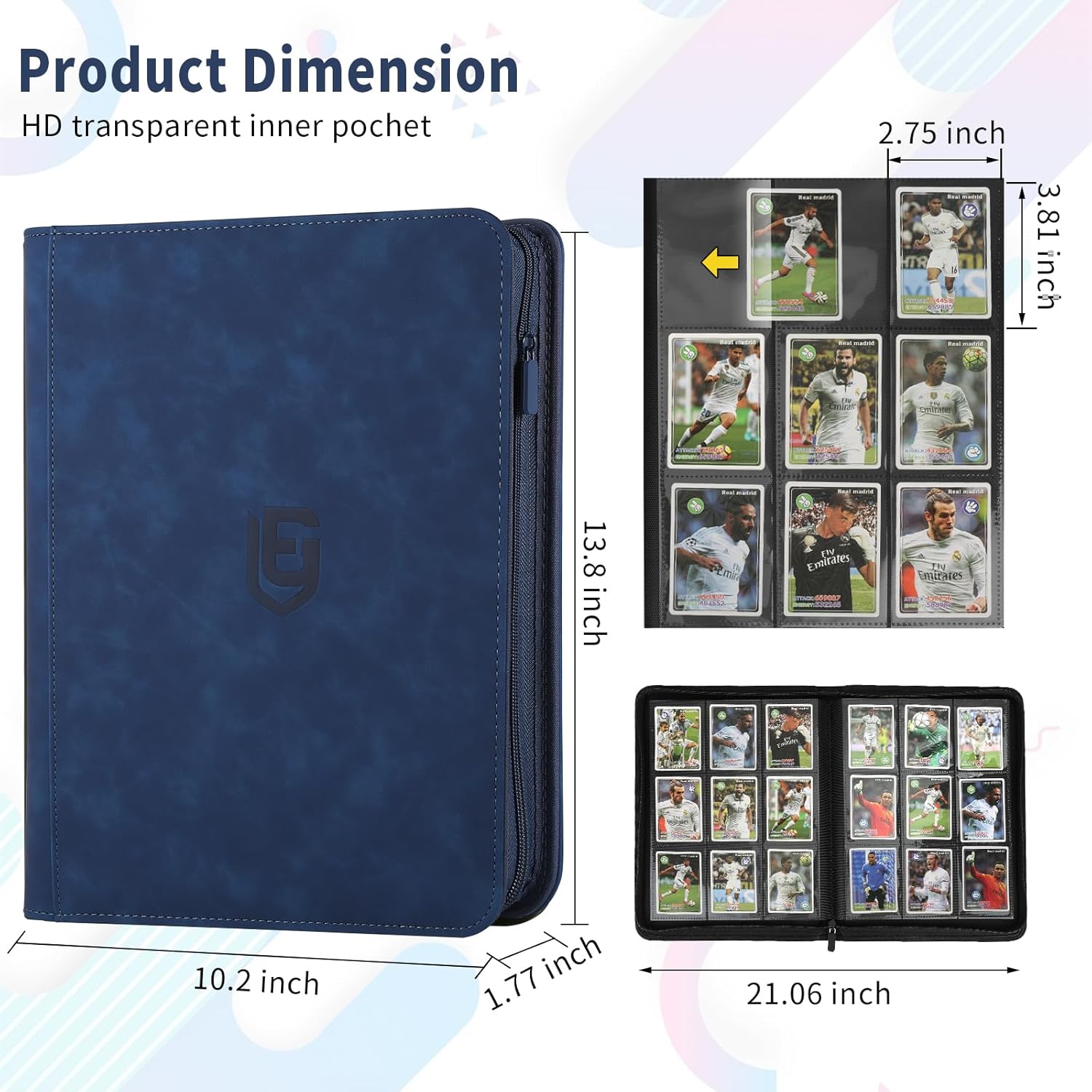 • LARGE CAPACITY CARD STORAGE:Smooth zippered card holder with 9 pockets per page,30 double sided pages hold up to 540 cards,providing plenty of space for card collectors and players to organize their cards