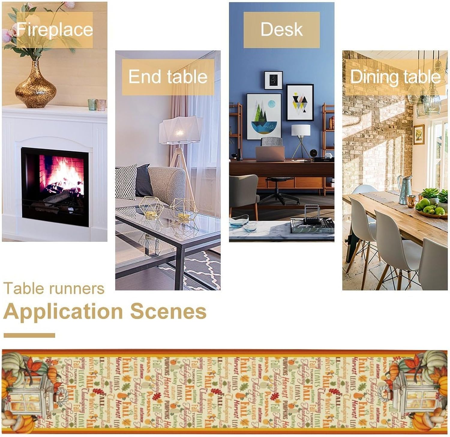 Autumn Table Runner,Farmhouse Leaves Pumpkin Thanksgiving Table Cloth for Kitchen Dining Table Decoration Home Party Decor 13x90 Inch