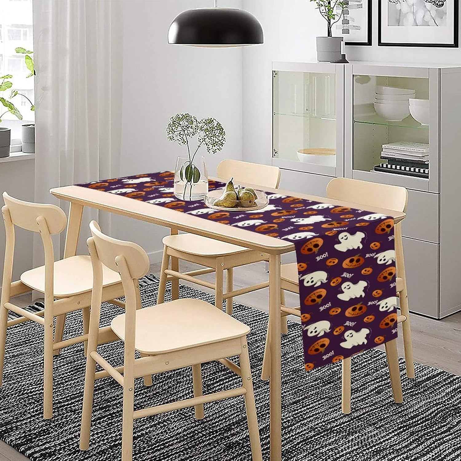 Halloween Table Runner,Ghost Pumpkin Halloween Table Runner for Kitchen Dining Table Decoration Home Party Decor 13x70 Inch
