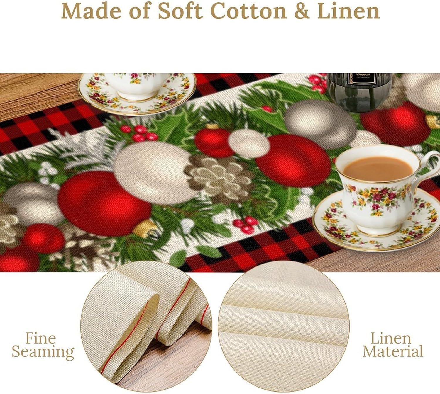 Christmas Table Runner,Seasonal Winter Xmas Holiday Farmhouse Table Cloth Kitchen Dining Table Decoration for Home Party Decor 13x36 Inch