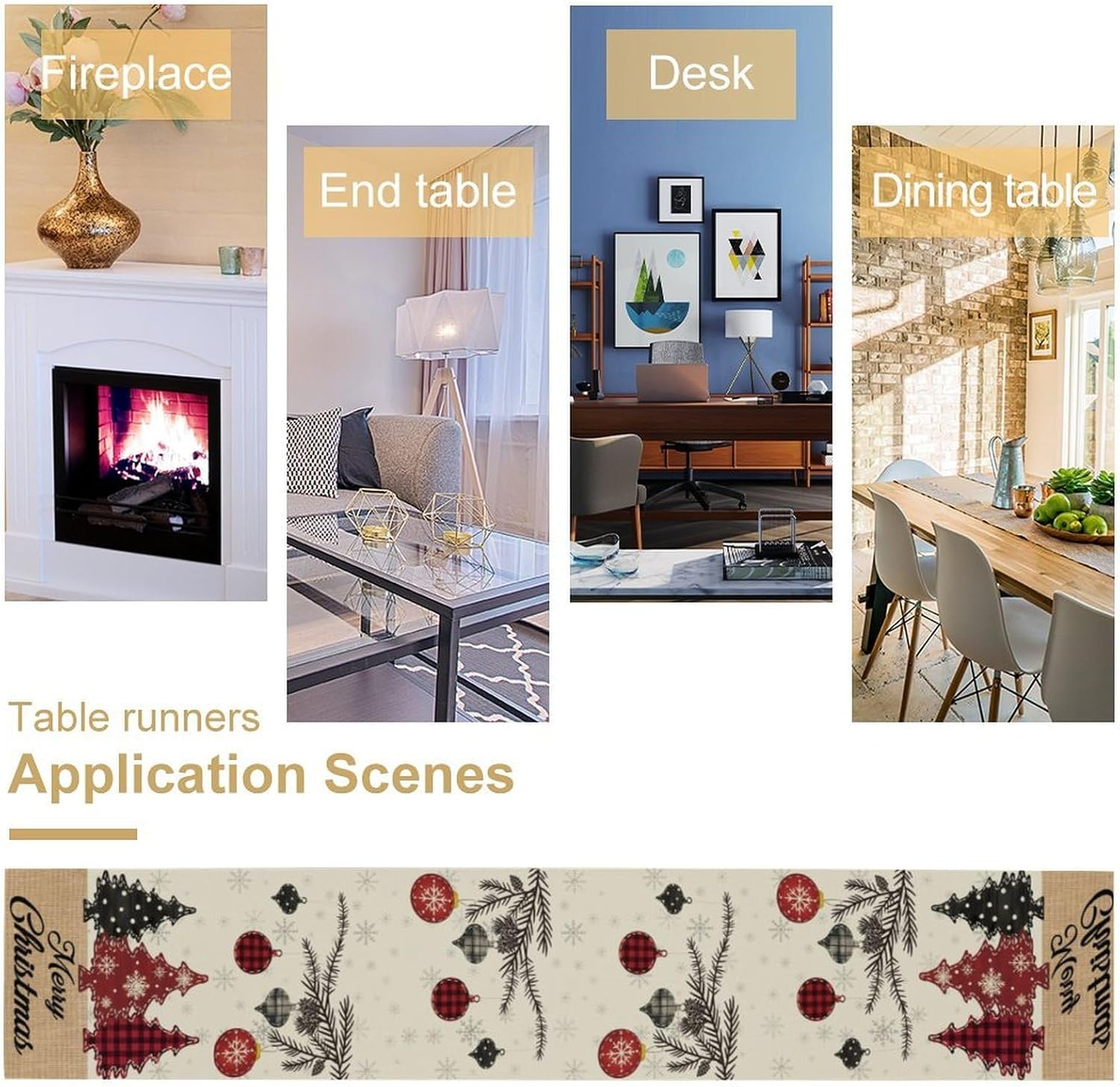 Merry Christmas Table Runner,Winter Xmas Holiday Kitchen Dining Table Decoration for Home Party Decor 13x120 Inch
