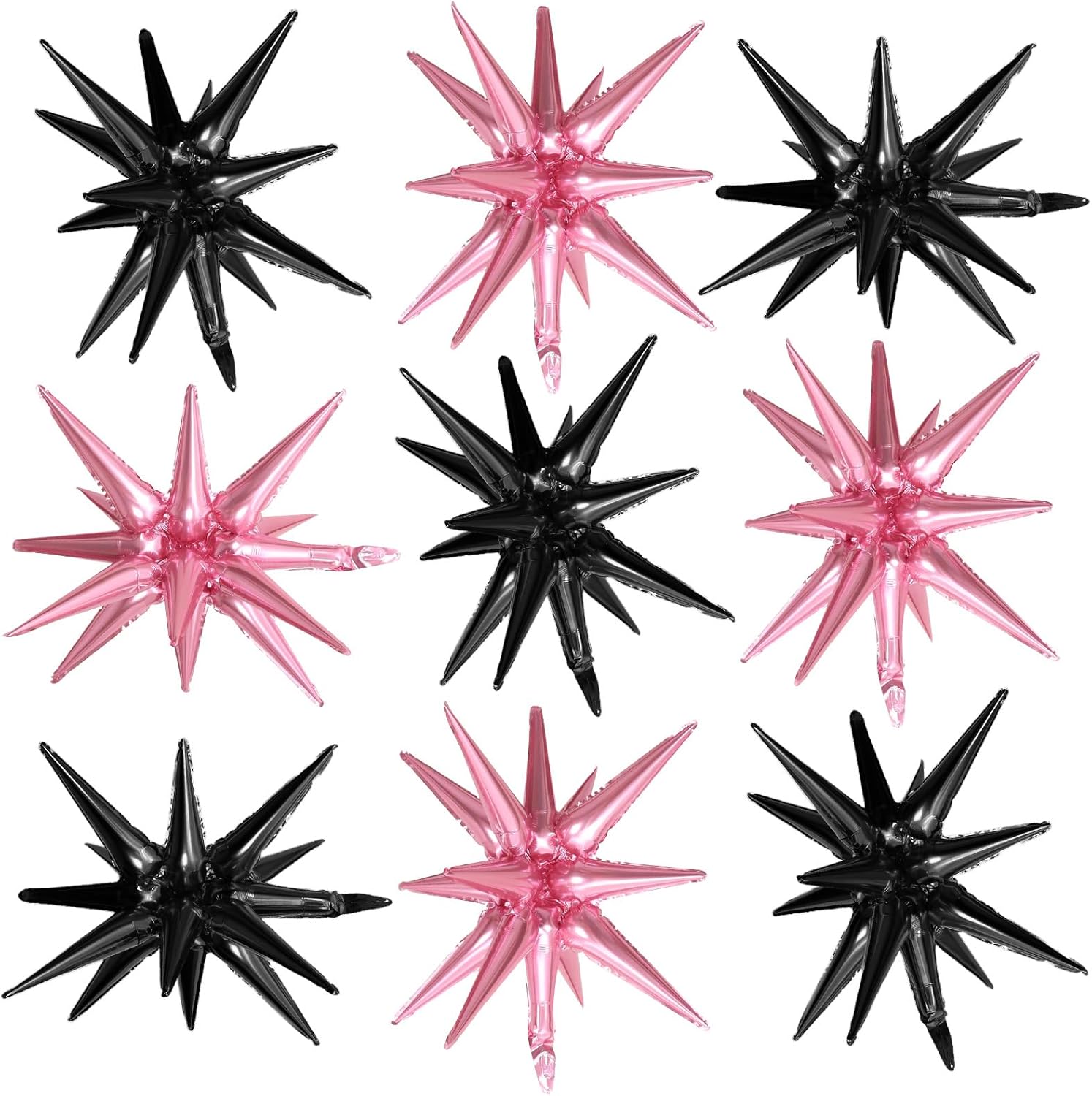 Pink Black Star Balloons,9Pcs 22Inch Black and Pink Explosion Spike Cone Helium Polyester Film Star Foil Balloons for Birthday Anniversary Baby Shower Disco Party Decorations