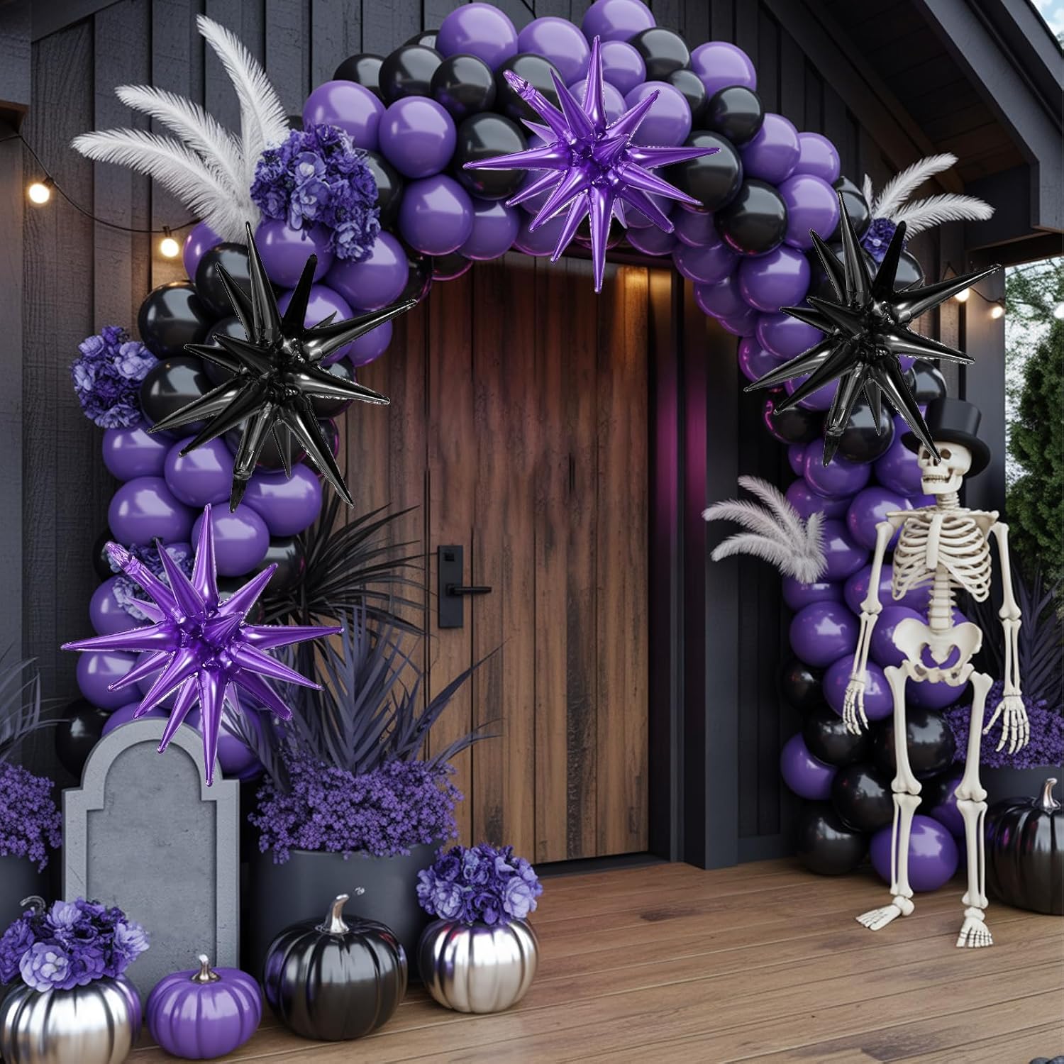 • Black Purple Star Balloons Set:Package include 9pcs 22Inch explosion star balloons(black x 5,purple x 4).Large enough to help you better decorate your party.